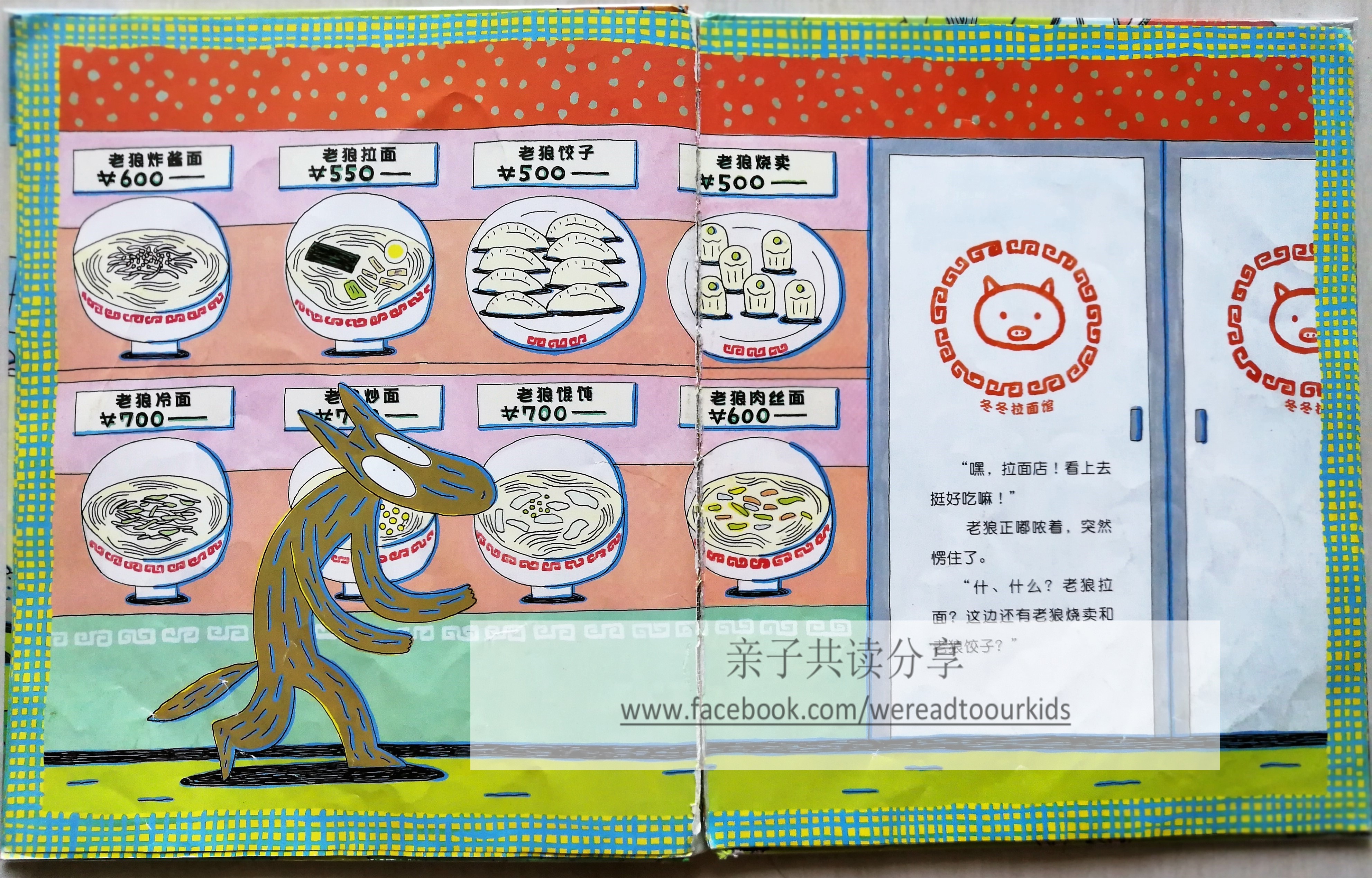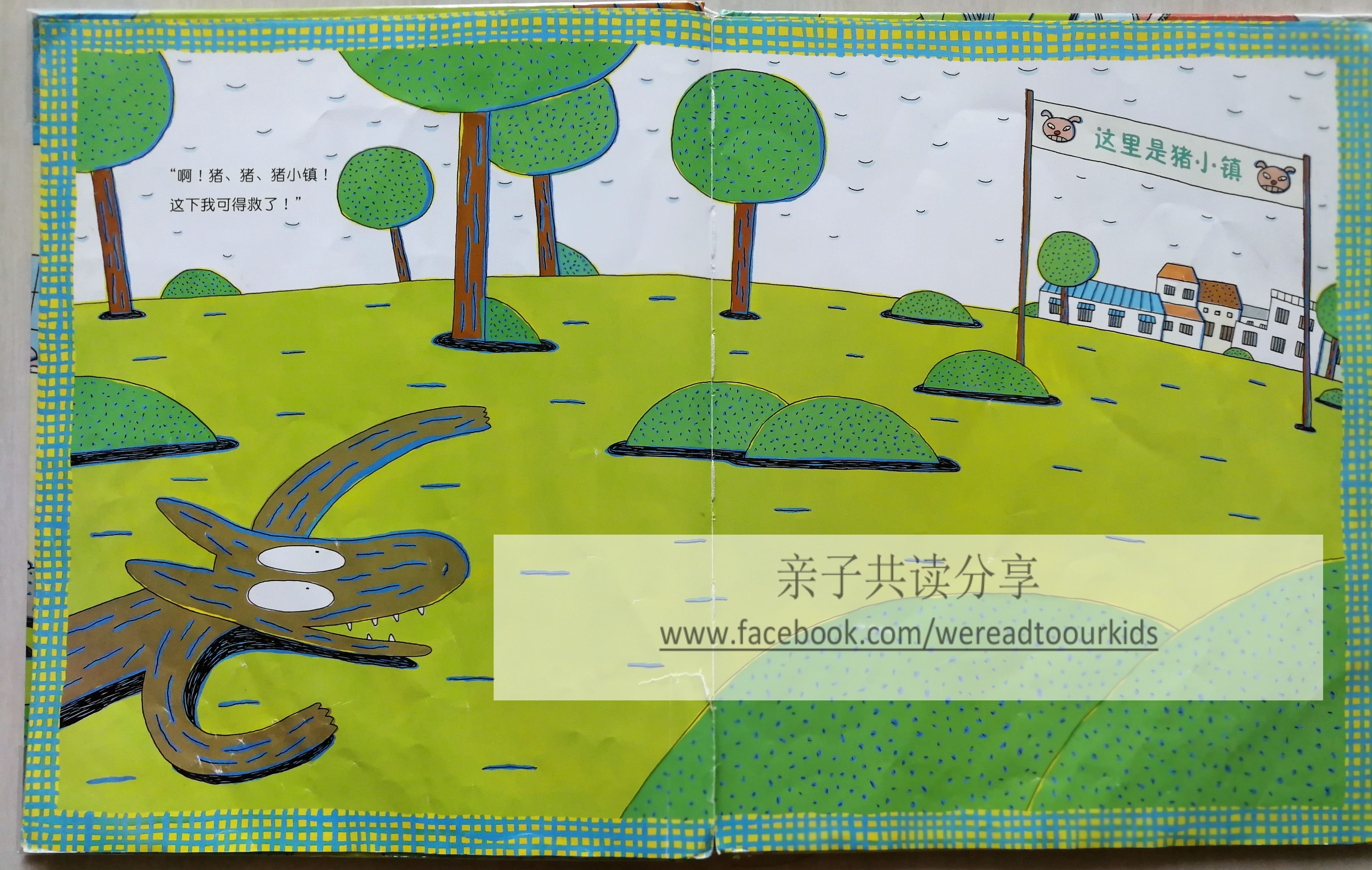 虽然孩子似懂非懂,大爷一贯的奇特画风,配上生动的人物表情和趣怪的故事,并无损他享受与父母共读《好饿的老狼和猪的小镇》。