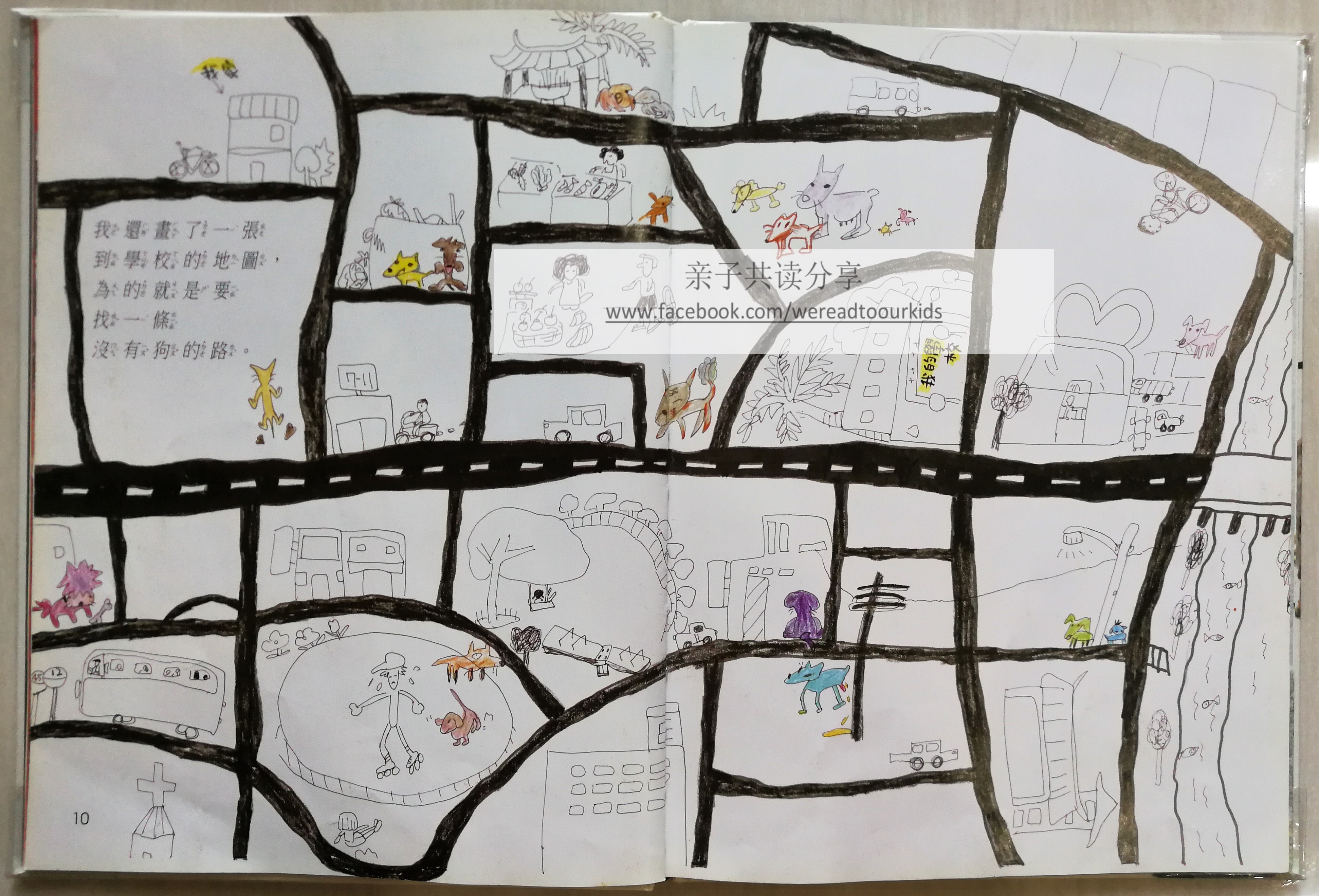 书中的主角因为怕被家狗狂吠、被野狗狂追,宁可走远路绕道避开危险地带。作者画的那张绕道图很有趣,共读时还充当迷宫玩了几回。虽然怕狗,但从不会想要伤害它们。看到小腿短短,身体胖嘟嘟,可爱到不行的小狗,还想抱回家养。这个情景大家应该很熟悉,可能曾经发生在儿时的我们,或许最近孩子也跟你要求养小狗小猫。你怎么回应孩子?立即给他选一只可爱的宠物带回家,还是一口拒绝呢?