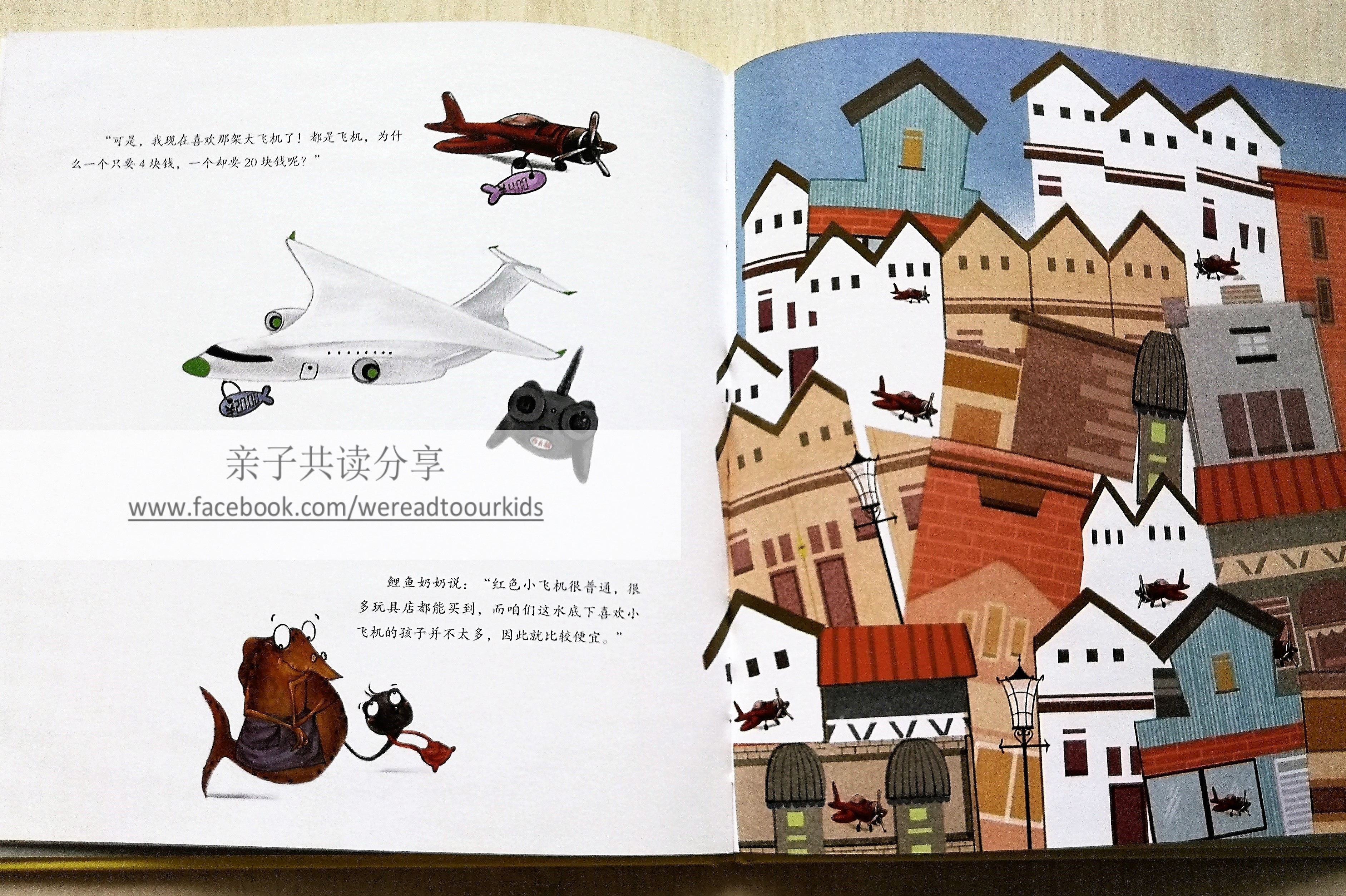 这套财商启蒙童话是多妈早年在淘宝乱逛的时候买下的套书,一年前才开始跟孩子共读。通过一只小蝌蚪乌卡想要一架遥控飞机的故事,带出以下的主题: