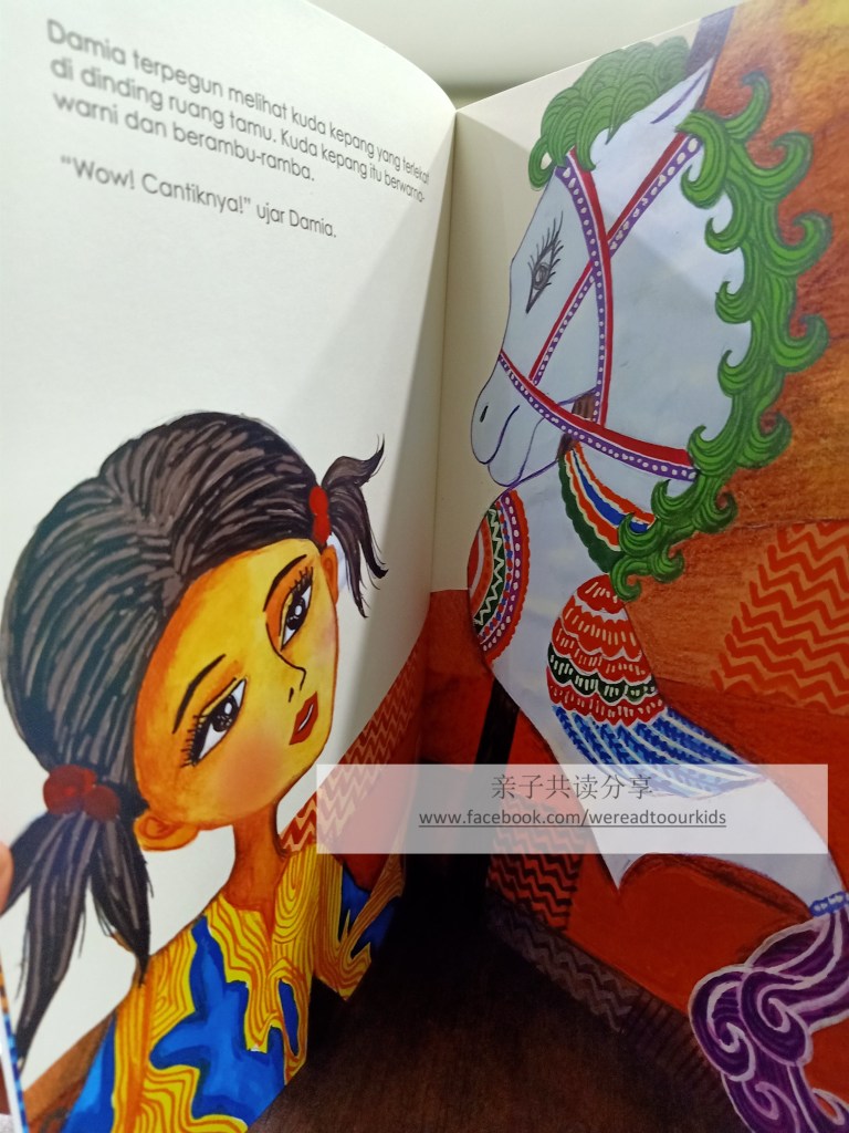 学校假期开始了,Damia到祖父的家乡度假。她被挂在墙上那色彩斑斓的Kuda Kepang深深吸引,心想,“如果可以能骑着Kuda Kepang在空中观赏乡村美景,该有多好啊!”。奇怪的事情发生了!Kuda Kepang跳向Damia并示意她骑上马背,然后飞上天空。。。
