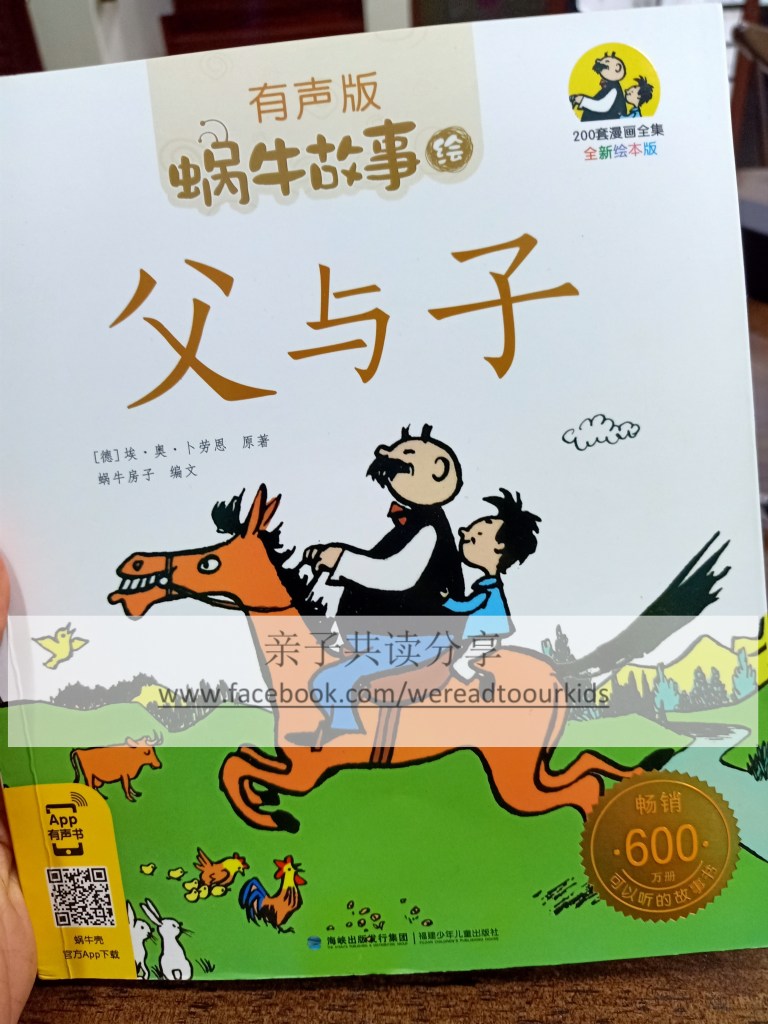 如果你家小孩跟我的一样,有定时共读中文绘本的习惯,200左右识字量(其实我没算,这是之前他爸做的记录),对文字阅读兴趣不大,或许可以考虑给他添购这本《父与子》漫画全集。