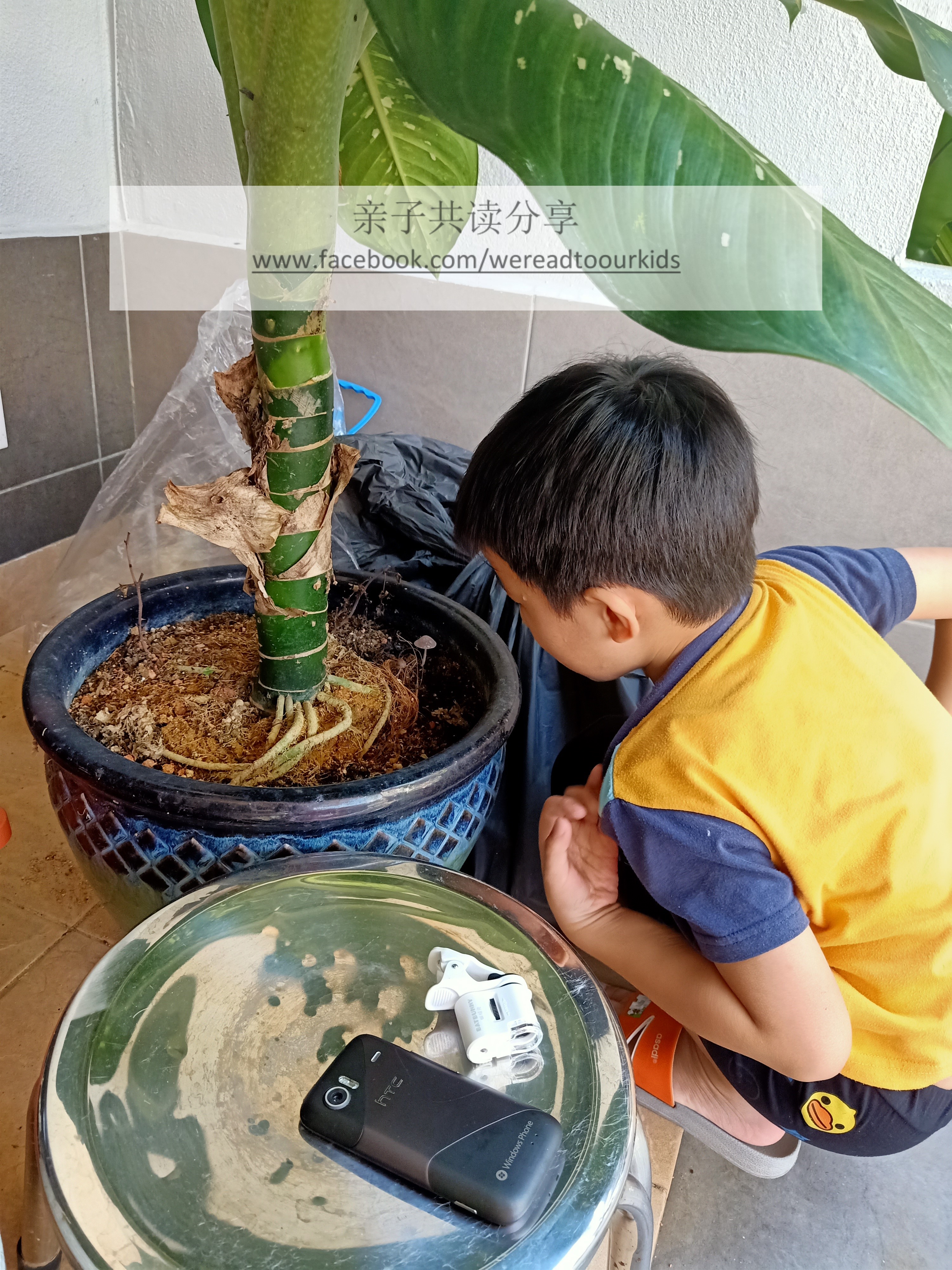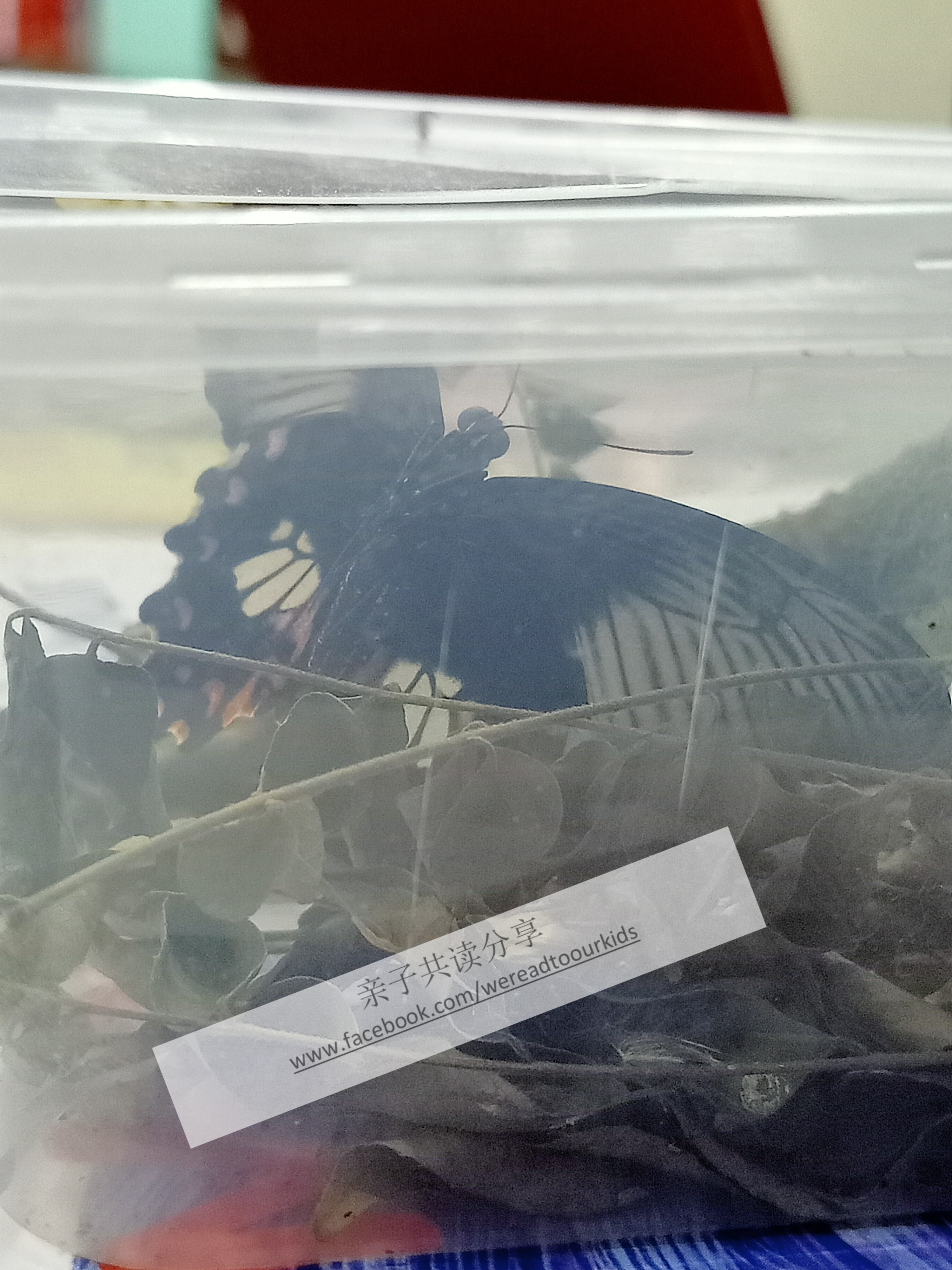 多多对于昆虫的热衷,始于一只他名为“慢慢”的毛毛虫。他爸在爷爷家捕获一只毛毛虫,原以为只是拿给儿子看看,没想到我因为看过马来西亚原创儿童图书推广系列 之 《Kisah Si Rama-rama》, 知道大概怎样养,就把“慢慢”带回家了。就这样,开启了孩子探索昆虫之门。“慢慢”在我们家,儿子每天看着它不停地吃咖喱叶(原来毛毛虫也会偏爱某种食物),待了一个星期后成蛹,又等了近两个星期,终于在孩子放学回家后发现它羽化成蝶。因为害怕它困着太久会受伤,母子俩急急忙忙把它放了,没来得及拍下一张比较完整的照片。慢慢飞走那一刻,我心中居然有一丝不舍,有寄养的孩子终于长大离开了的味儿。说到味儿,养慢慢的房间一直弥漫着一股它的味道,想必是它频频受惊放屁,这也是在书中读到的知识。