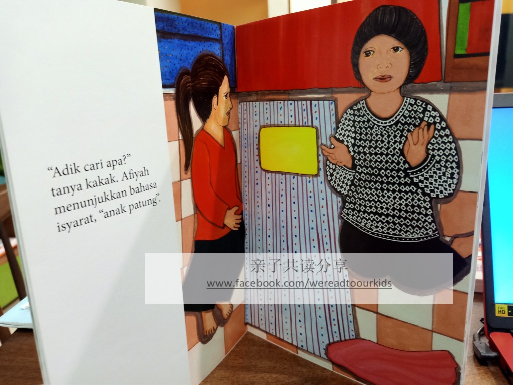 这是少数以特殊儿童为主题的原创马来文绘本,单单这点就很令人鼓舞。在情节铺陈上略显单调,但是文字运用还算精简,结合图画,与语言程度不高的孩子共读不会困难。