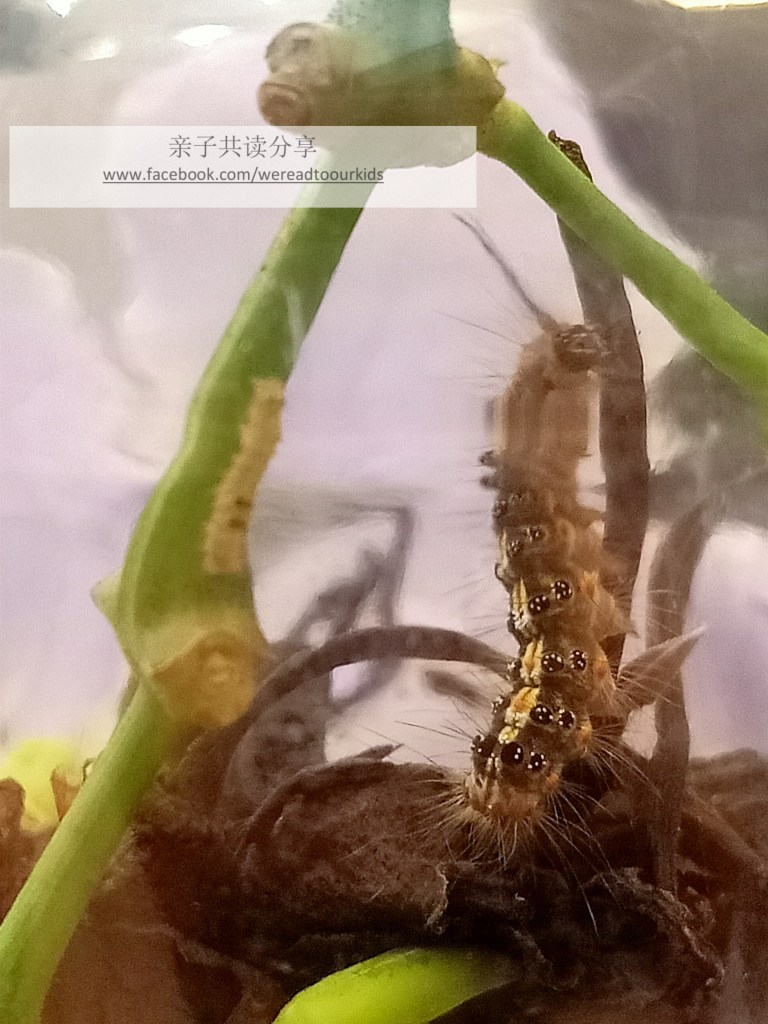 多多的昆虫热继续延烧,目前我们家有一个蚂蚁窝、一个马陆窝,还有几只野生捕获的可怜毛毛虫。蚂蚁窝是我为了环保省钱,上网DIY做一个应酬他的,效果虽然不是很好,但也够他忙几个星期,现在是个被废弃的沙罐子。毛毛虫养了几个星期,潜逃过几次,后来儿子声称已经成蛹“飞”走了,但我啥都没看见,极度怀疑是葬身于粪便与叶子花朵中。