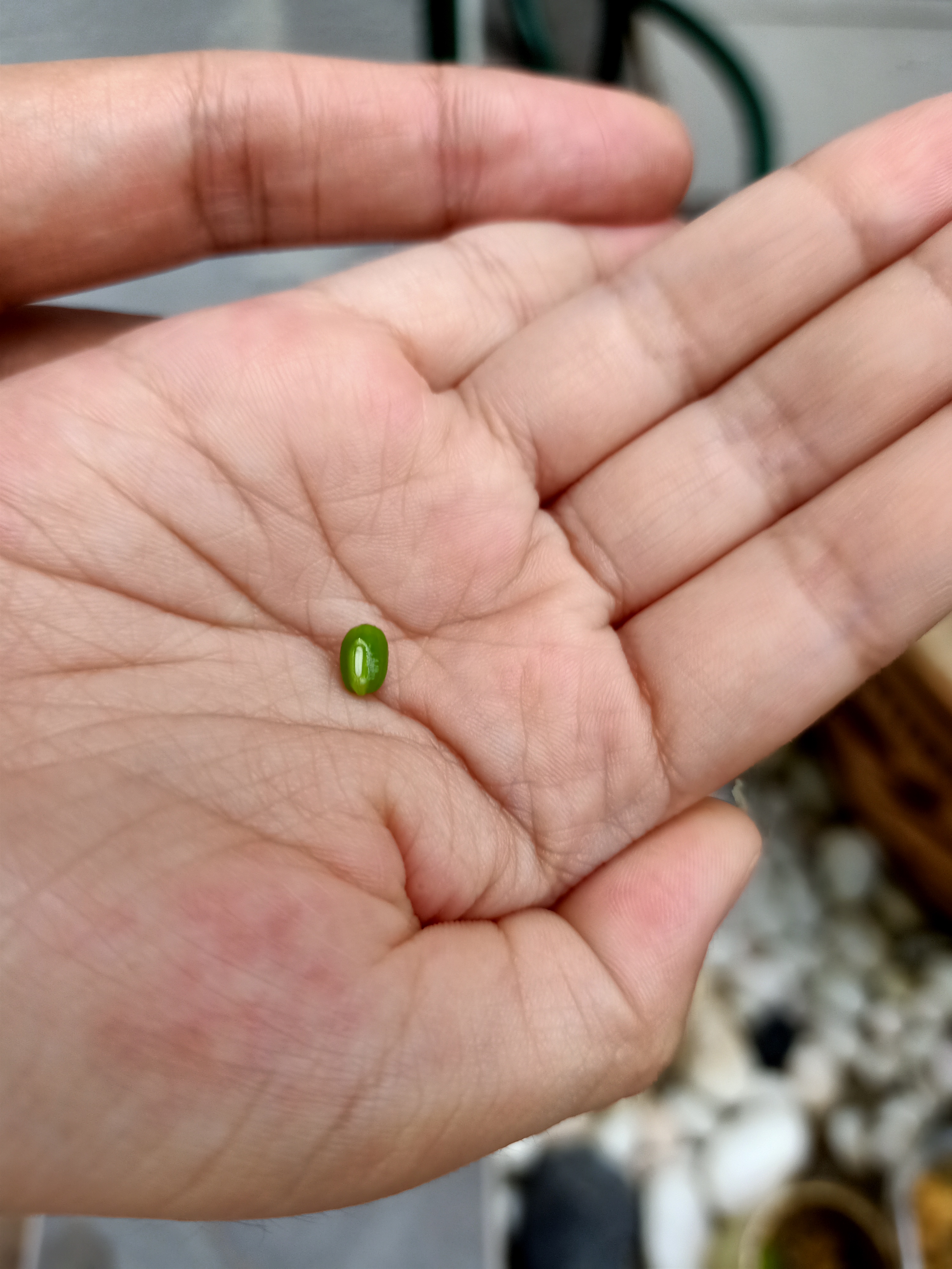 这只马陆就养在种着绿豆植物的盆子里,儿子每天看顾着,给它取名“短短”。有天他告诉我,“短短”已经生宝宝了,往盆子里一看,还真的有两颗棕色的,之前没看过的卵!根据我们合理推断,可怜的“短短”夫妇俩,大概是交尾后被儿子捕获,老公死了,留下“遗腹子”。。。
