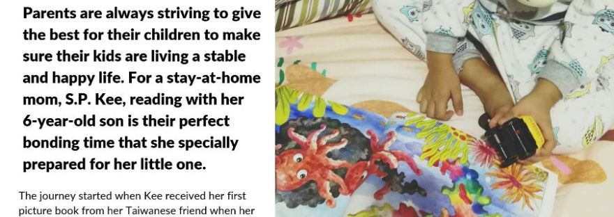 “Parents are always striving to give the best for their children to make sure their kids are living a stable and happy life. For a stay-at-home mom, S.P.Kee, reading with her 6-year-old son is their perfect bonding time that she specially prepared for her little one.”