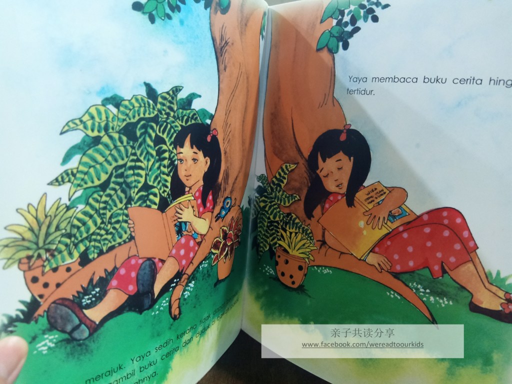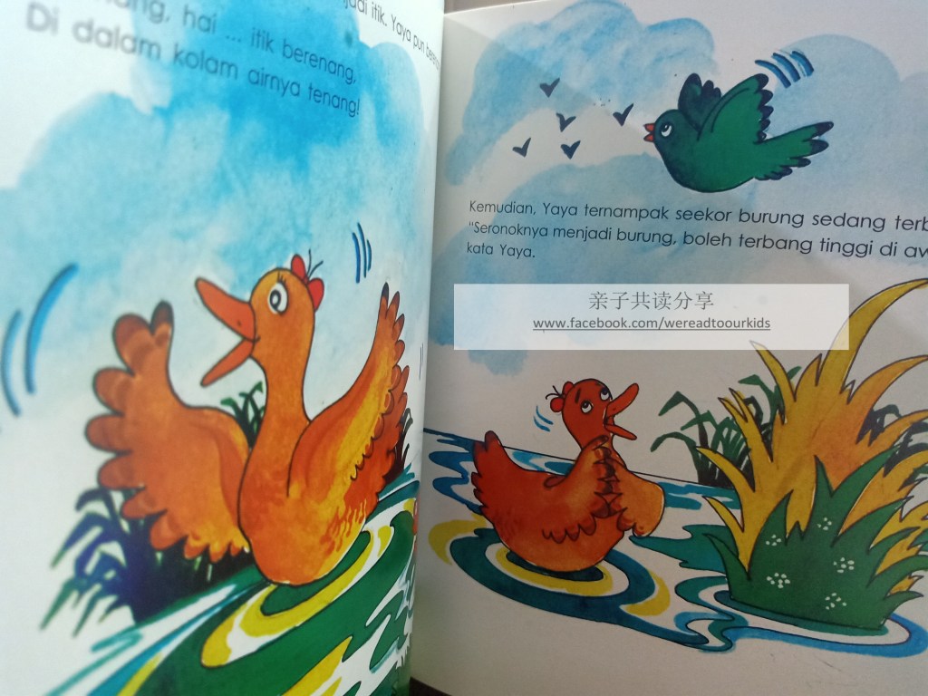 大人都没空陪Yaya到公园玩。闷闷不乐的Yaya到屋前的树下看书。看着在池塘里游泳的鸭子,Yaya心想“我要像鸭子在池塘里游泳”。Yaya心想事成,突然就变成一只鸭子了。过了没多久,她又变成了在空中飞的小鸟,在雨中戏水的青蛙。这下不好了,变成青蛙的Yaya被蛇盯上了,她要如何脱险呢?