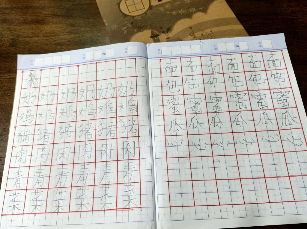 开学后,能好好上华文课的时间减少了,也相对缺乏弹性。孩子每天3点放学,回家后洗澡发呆玩玩具看电视,转眼就5点,轮到我开始准备煮饭。只有星期五上半天课,他在打扫完自己的小房间后,勉强坐下上30-45分钟的华文课。