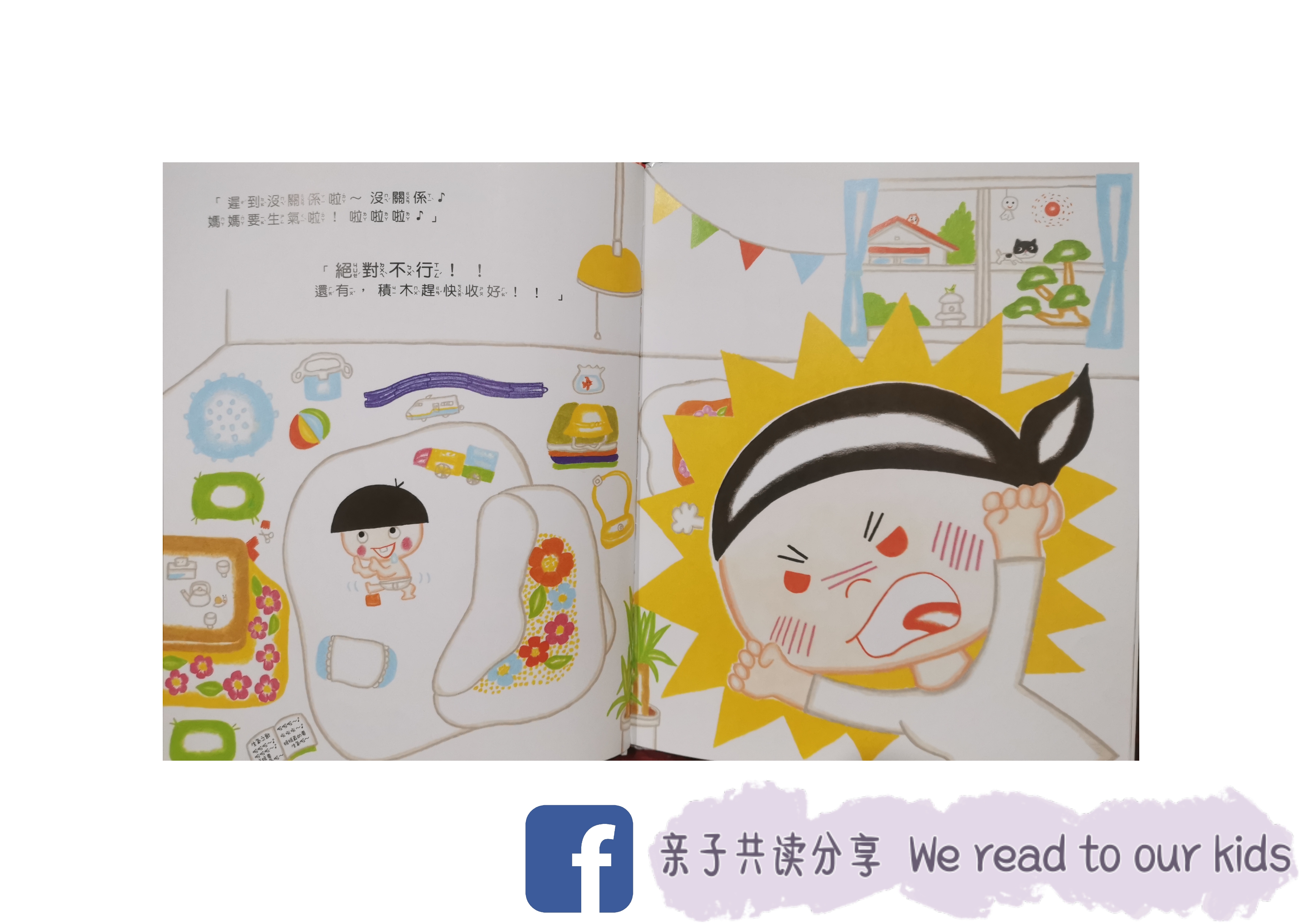 正因为如此我与亘宝共读的时候十分有共鸣,尤其妈妈频频发火以及母子抱在一起的那几幕,简直就是在画着我嘛。而亘宝呢,她是个斯文宝宝,她没有书中主角那么高境界的调皮,但是她觉得里面的主角好搞笑她知道有些是不对的行为,她还会跟我一起讨论干嘛主角佑佑要把袖子剪掉,为什么要挤进妈妈的裙子