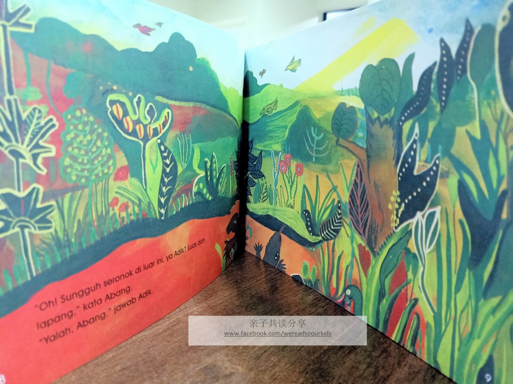 撇开故事性不说,这本图画书比较接近绘本的形式,没有过多的文字,插画家也善于利用跨页表现自己的作画能力。只是多妈实在害怕蜥蜴啊壁虎啊这些小动物,连图画也不爱看。反而儿子自己主动翻阅,因为小至壁虎大至哥斯拉(?)的爬虫类他都喜欢。