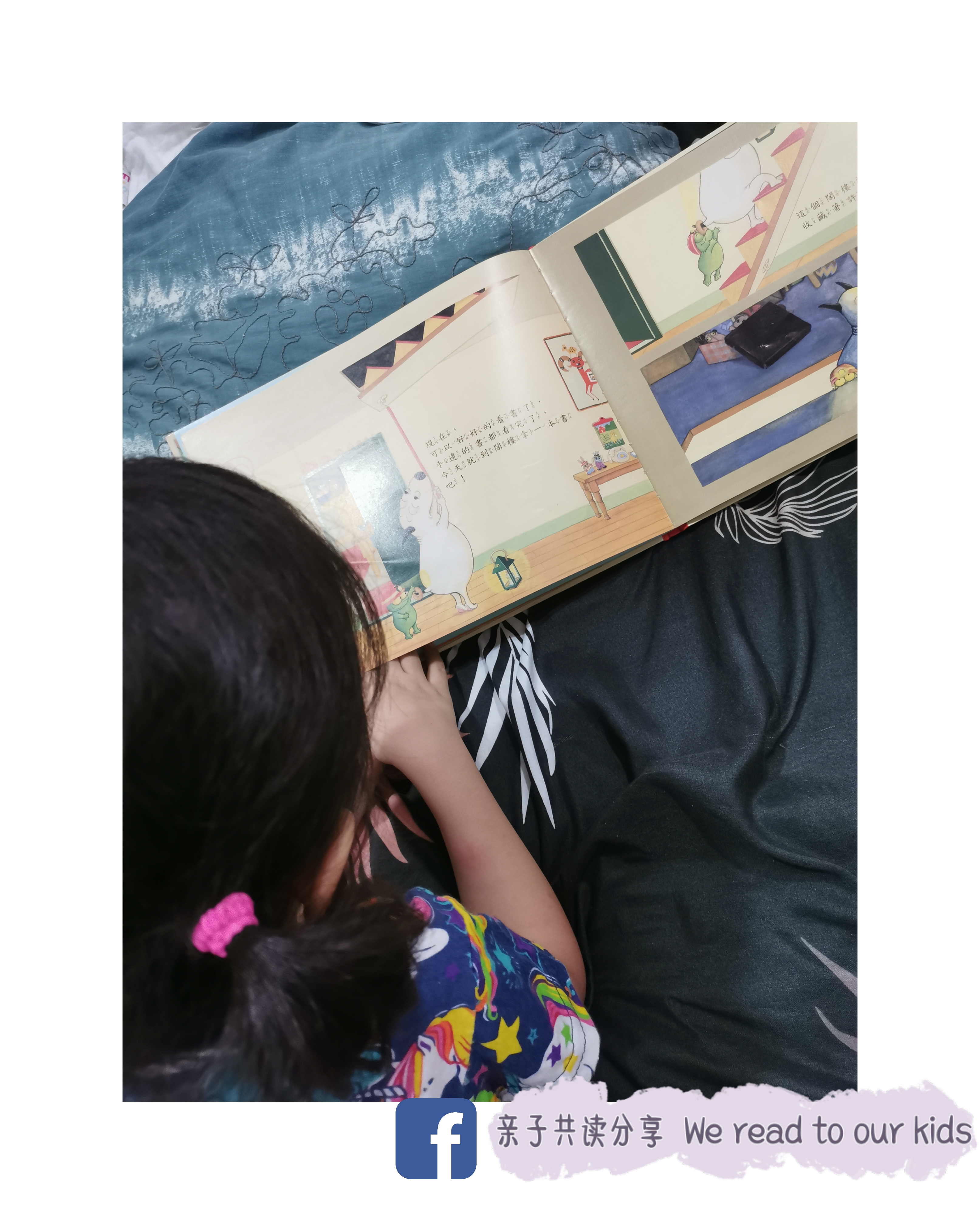 刚拿到书,亘宝习惯会自己翻阅一遍再让我共读。我当时就去洗澡,怎知道亘宝来敲浴室门,笑着跟我说书里的青蛙好好笑哦!接着就一直跑来问我洗好澡了没😂