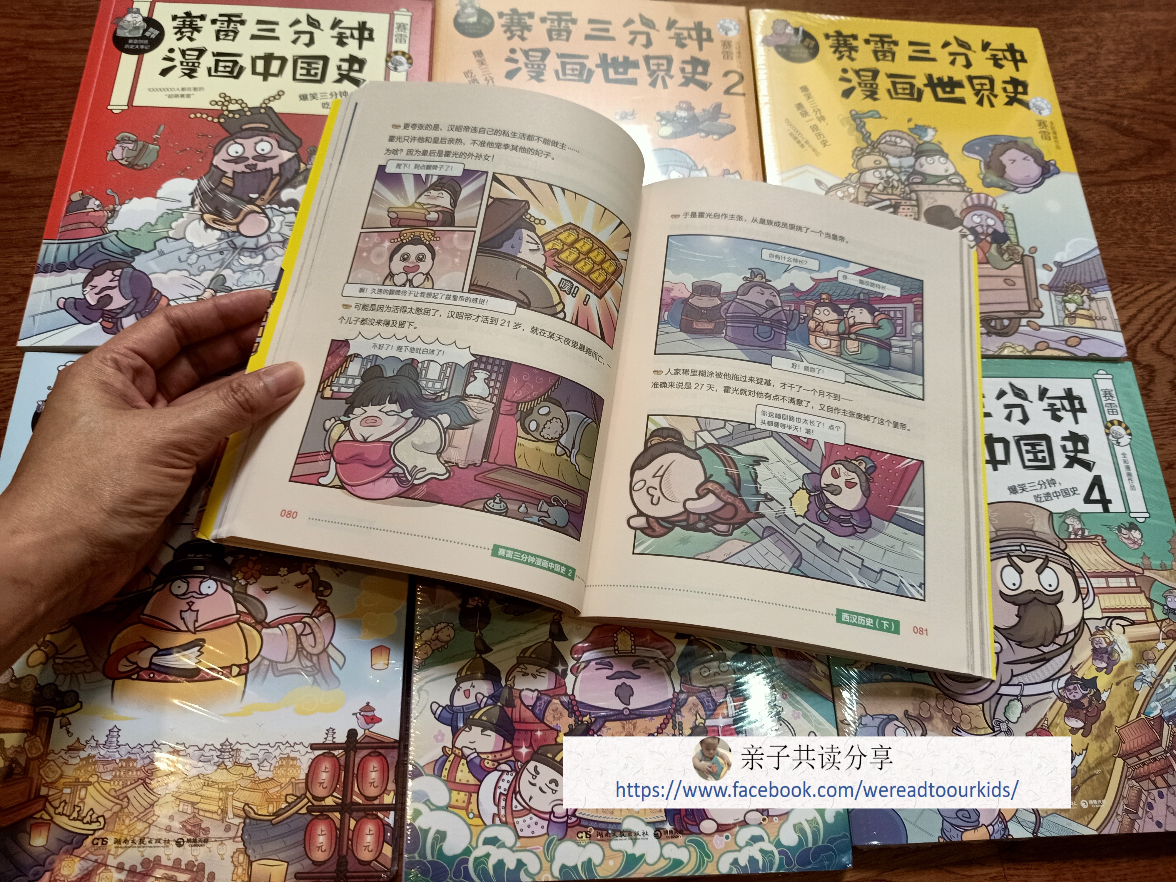 《赛雷三分钟漫画历史》跟之前很有名的《半小时漫画中国史》的着重点虽然不太一样,但是皆以现代诙谐搞笑手法讲中国历史,图画精美人物形象呆萌(个个像不倒翁)。原本以为让孩子通过漫画来接触中国历史会比较有趣,结果。。。哈哈大笑的是妈妈,摸不着头脑满脸疑惑的是儿子。虽然他没有抗拒,但明显听不懂。