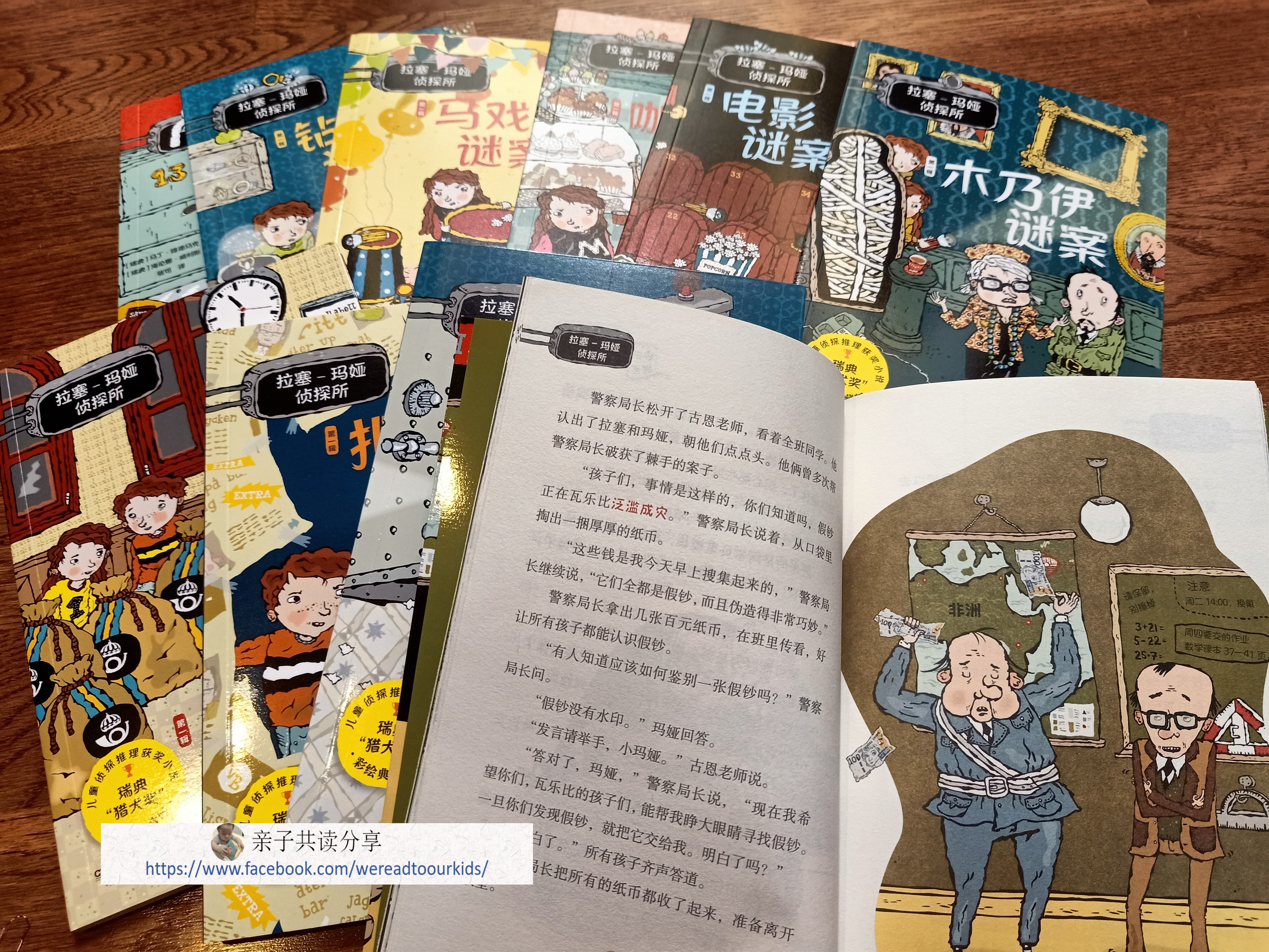 《拉塞玛娅侦探所》系列是瑞典儿童侦探推理小说,彩色插画很多,原以为爱上《屁屁侦探》的多多,在接触福尔摩斯之前可以先接触适合儿童的推理故事书。结果,眼角瞄一下封面就说不要看,说他比较喜欢屁屁。除了文字比《小火龙》桥梁书多一些,内容主题对于一个一年级生的确过于陌生(比如印假钞)。