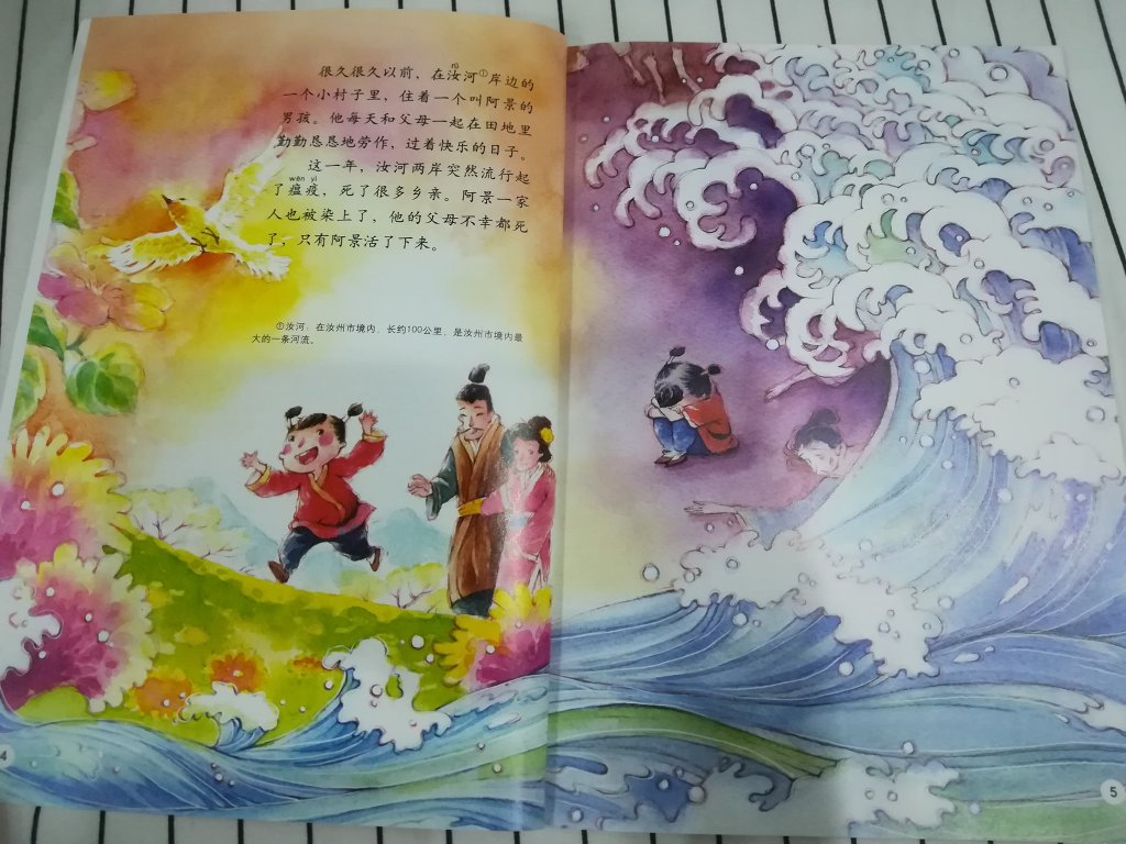 这本书我和哥哥共读了两次,弟弟没有兴趣听。读第一次时,哥哥没有什么反应,可能还不清楚故事情节。第二天再读时,他不大想读,因为他怕那个瘟魔,而且他知道再过一天就是重阳节,那瘟魔会出来。读到一半时,哥哥竟然哭了起来,说,阿景的父母死了,他不要爸爸妈妈死。