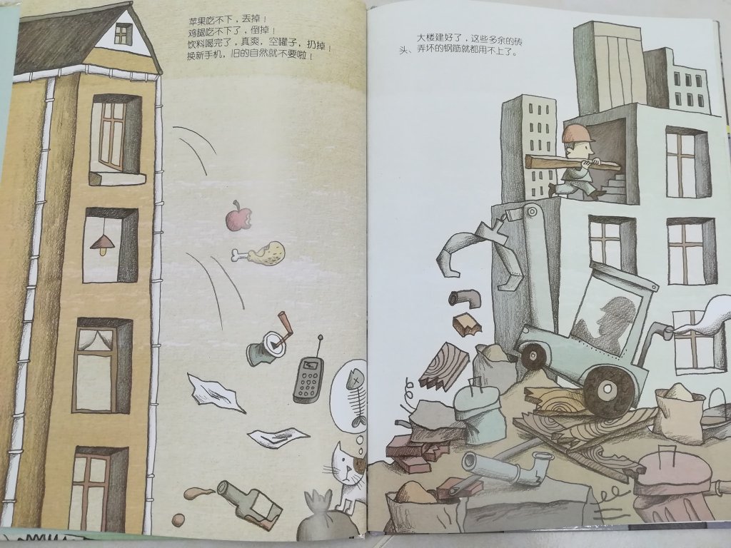 环保这课题是我们每个人都应该关心的,每个人都应该出一份力来保护环境。这本绘本给孩子们关于垃圾处理的概念,内容包括垃圾从哪里产生、垃圾怎么处理、回收了的物品的循环使用过程、减少垃圾的方法……