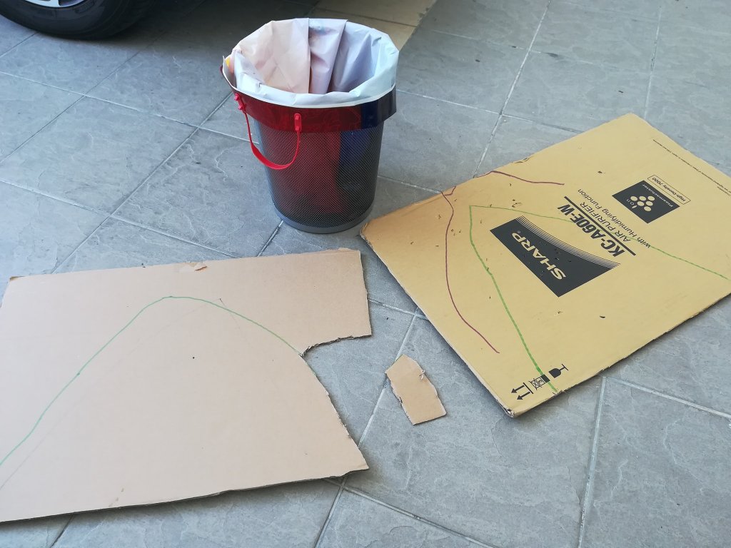 没想到第二天他竟然记得,还自己拿了纸皮和其他用具出来。我一开始也是当个旁观者而已,只不过他那小手没剪纸皮一下就受不了了,最后我还是出手了