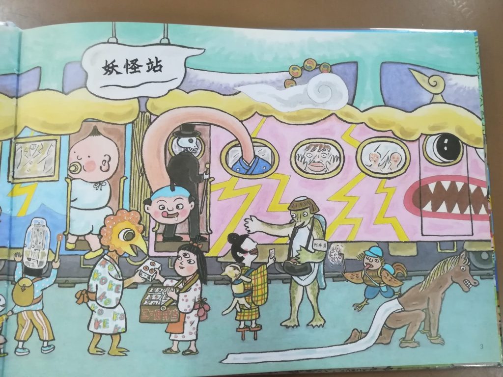 哥哥说他觉得害怕,因为有很多妖怪。弟弟没什么感觉,还没到害怕妖魔鬼怪的年龄。在图书馆,我们还看到另外两本同系列的书,《变身火车》和《酷虫火车》。怕妖怪的孩子要跳过这系列的书哦!