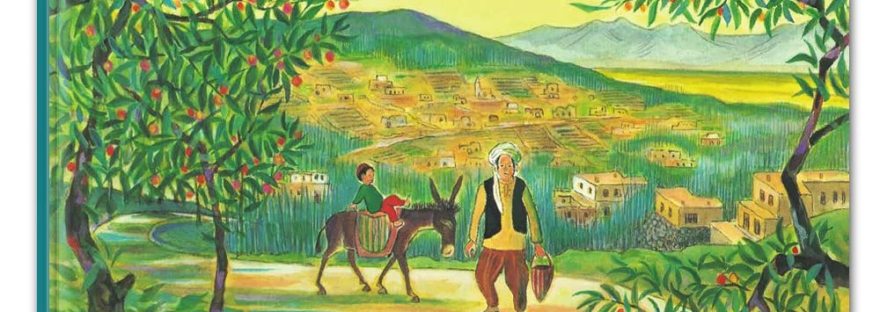 春天来了,李子花、樱花、梨花、开心果花……巴格曼村开满了花。小男孩亚默第一次代替上了战场的哥哥,牵着小驴奔巴跟爸爸到市镇上卖水果。一路上,他们与村子的人亲切互打招呼,沿着辽阔的沙漠向前走,目送着迎面而来的一匹匹骆驼与一辆辆汽车。到了镇上,爸爸摆开摊子卖李子,让亚默牵着奔巴沿街卖樱桃。亚默沿街吆喝,先是一个小女孩过来买了一点儿,随后一位拄着拐杖的叔叔也过来买了一些。