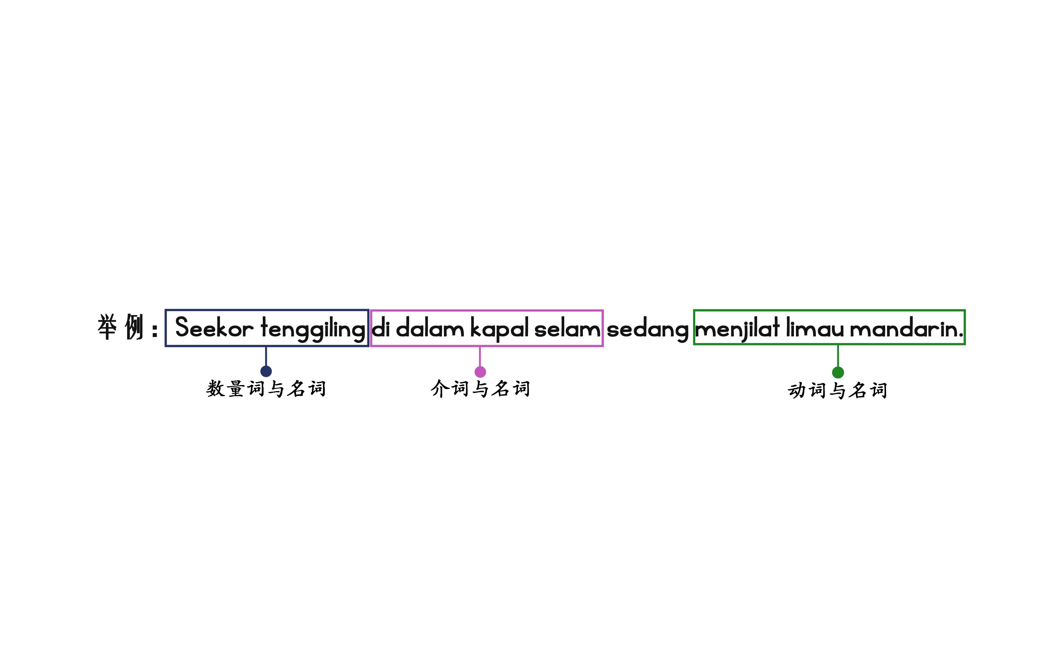 举例:Seekor tenggiling di dalam kapal selam sedang menjilat limau mandarin.
