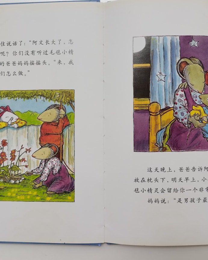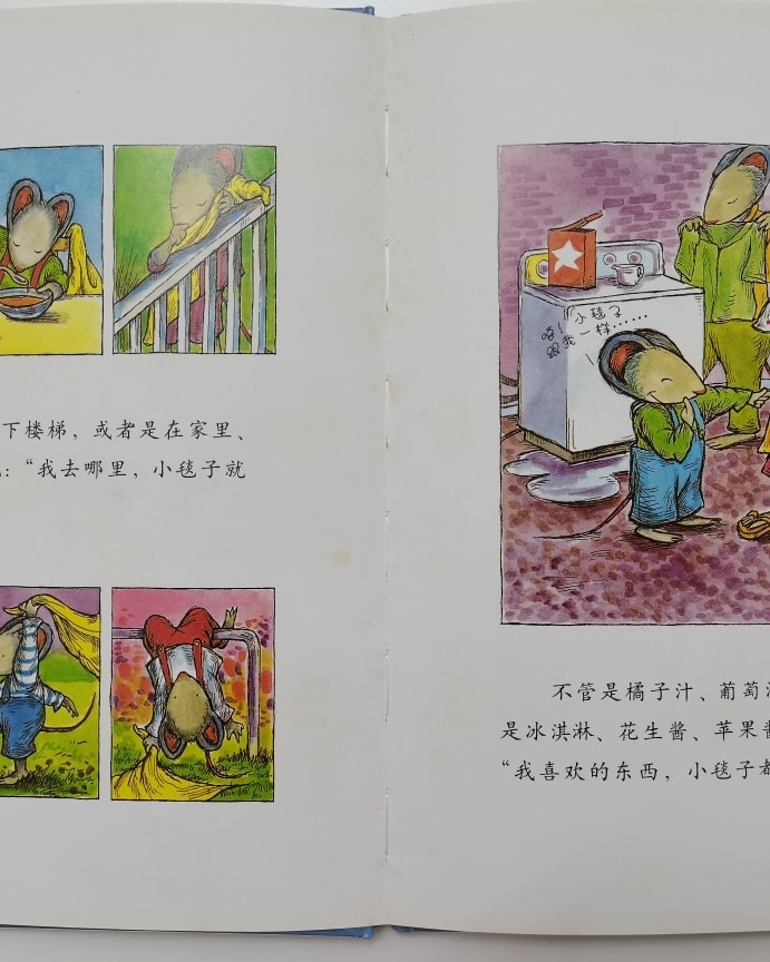 阿文有一条小毯子。他不管去哪里都会带着小毯子。隔壁阿姨一直在旁观察着。一天,邻居阿姨忍不住对阿文的爸爸妈妈说话了,教他们一些方法让阿文戒掉这个习惯。可是,这些方法都对阿文没效。眼看要去上学的日子逐渐逼近,爸爸妈妈也很懊恼。最后,妈妈想到了一个方法,她把小毯子剪小,缝成许多条小手绢儿。从此,隔壁阿姨不再多话了。