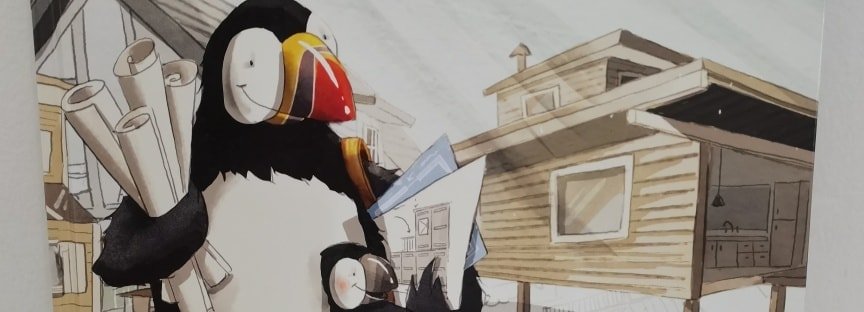海鹦是一位建筑师,为客户打造完美的家,每一间家都是量身定做的。她这次要为两只小海鹦造一间最棒的房子。她带他们俩去参观她所建造过的房子,但是他们都不喜欢。