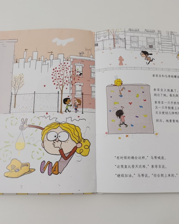 索菲亚和马蒂是好朋友,她们常到公园玩。马蒂是攀岩高手,索菲亚是跑步冠军。一天,她们在公园玩累了,索菲亚的肚子饿得咕噜噜叫了起来。索菲亚朝马蒂家跑去,马蒂跑不过她。