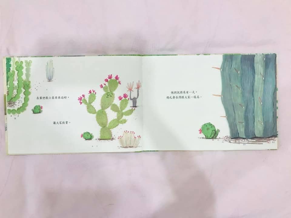 在绘本故事中有不少关于自我认知的折射,《抱抱我》就 是一个非常棒的绘本,讲的是一个叫菲利普的仙人掌, 尊重内心的想法,寻求拥抱的故事。