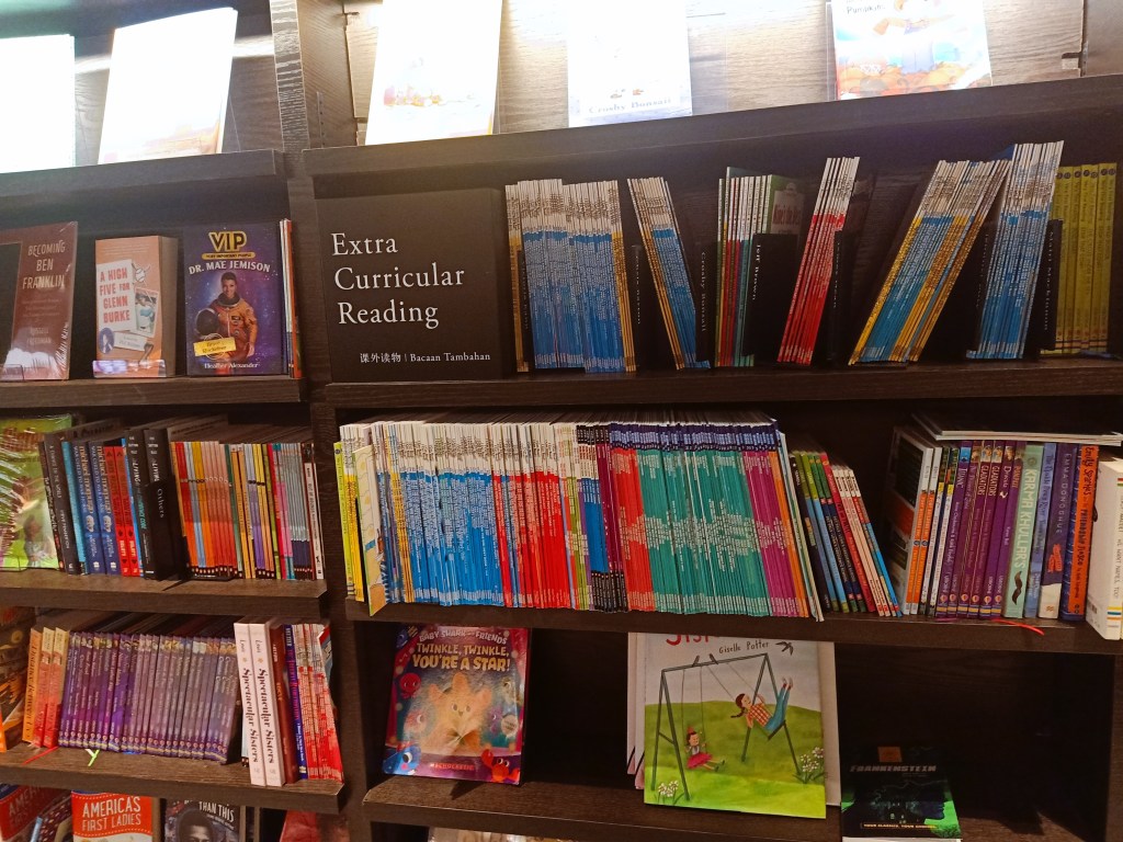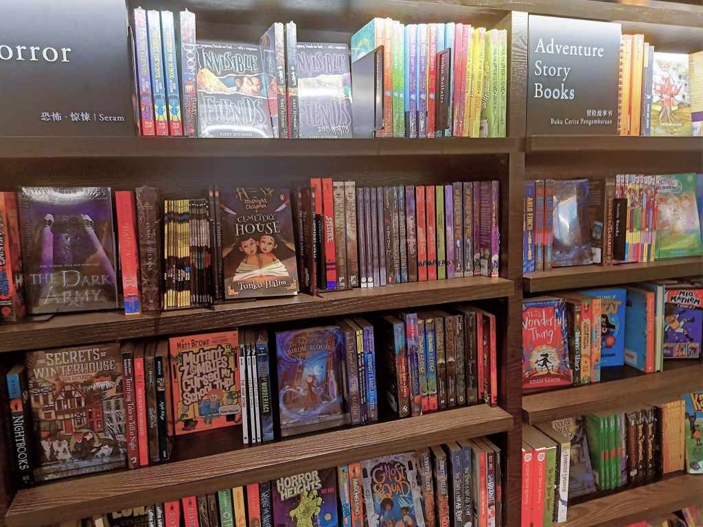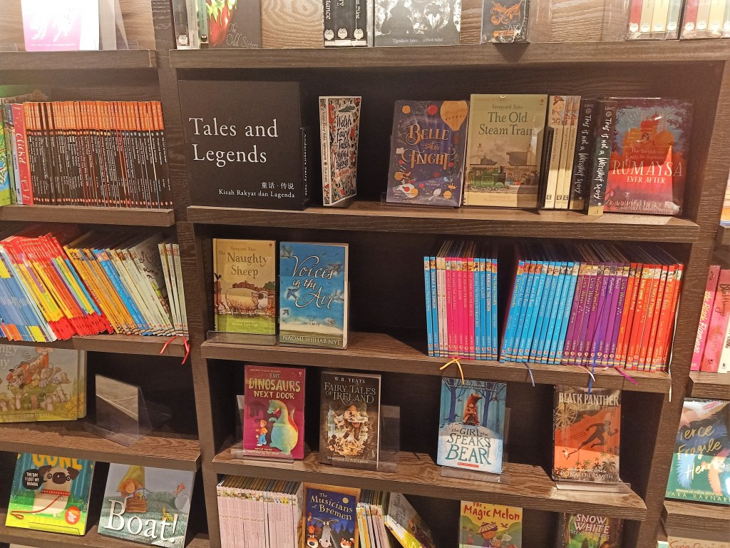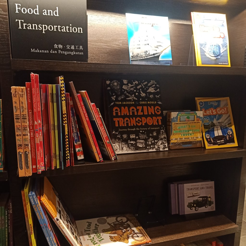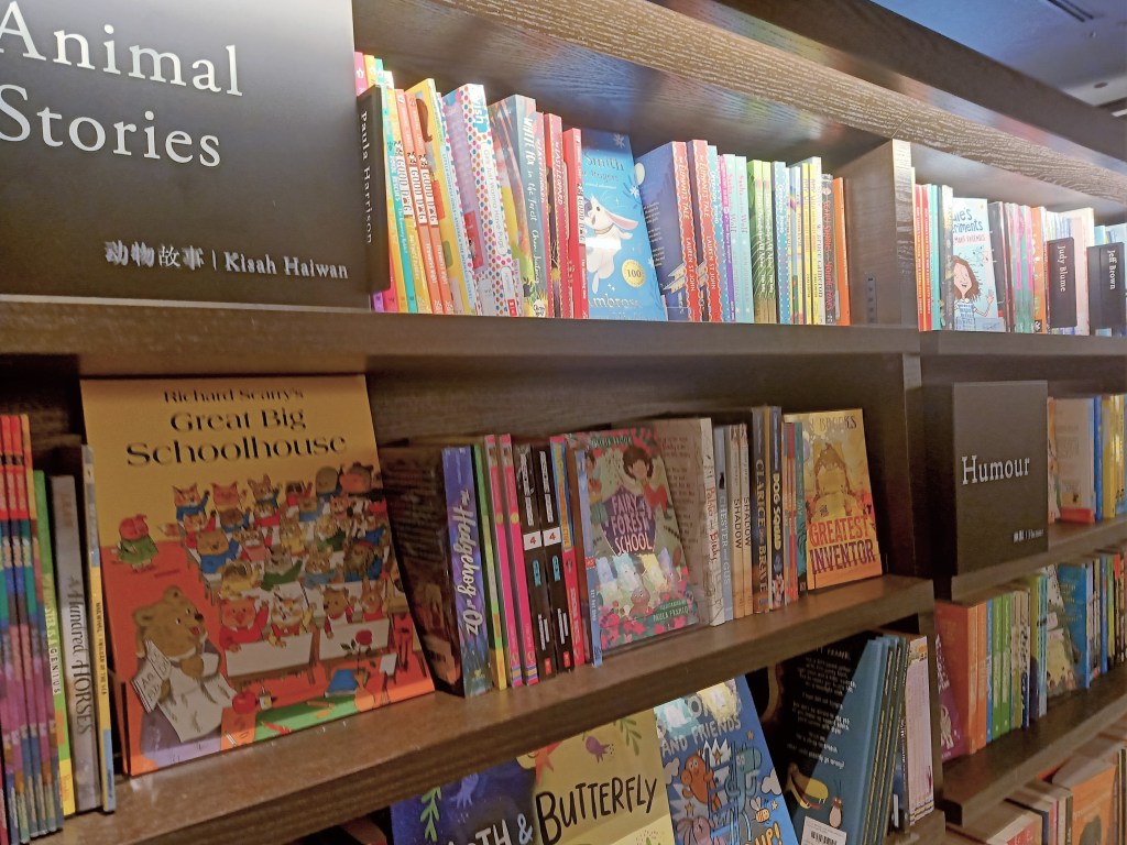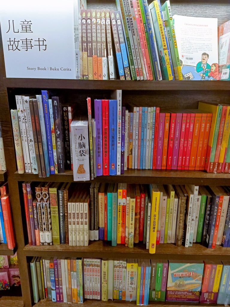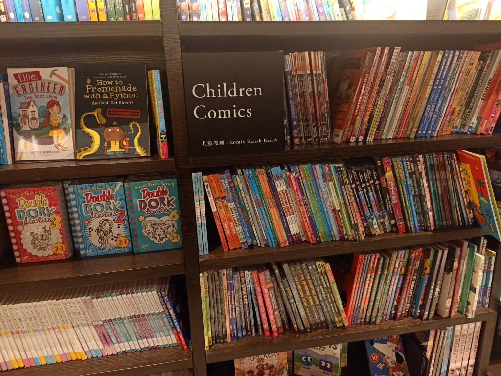 但我可以很肯定地告诉你,论童书类型多元化,茑屋目前是雪隆第一。童书,你可以说得出的,它几乎都有,有一大部分是我只能在网上望梅止渴的实体书。英文童书多,这是意料中事,难得的是连中文繁体书和简体书也很多,马来文绘本和漫画也好多。。。说到漫画,如果你是漫画迷,要顾好自己的信用卡,好大一块区域尽是漫画,中英巫都有。