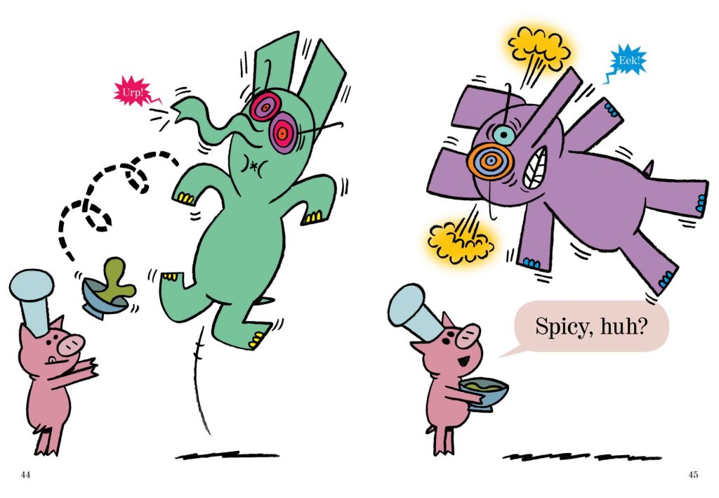 猪猪炮制了一碗软绵绵又臭臭的食物(在猪猪来看是十分美味的食物)。偶然间,大象刚好经过看着那碗味道臭臭的食物露出十分讶异的表情问猪猪:“You eat that?”