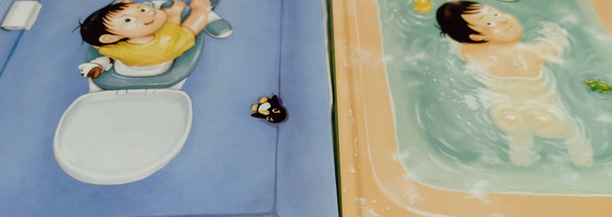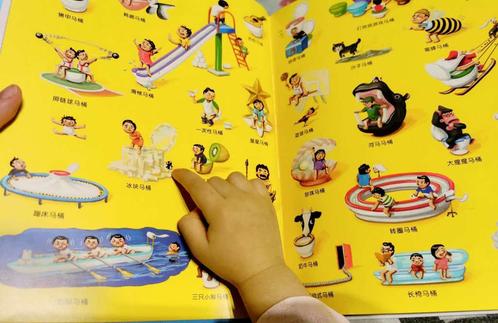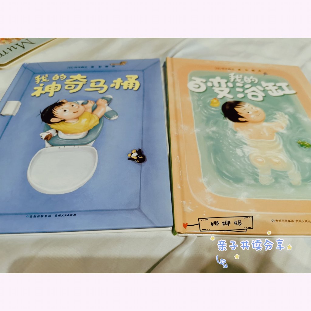 我想最近这两个月都在共读铃木典丈的《百变浴缸》和《神奇马桶》。我们还发现封面出现的2个小玩具,绘本里的每一页都可以找到的。