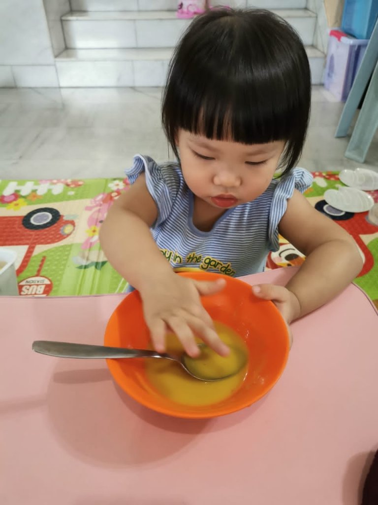 有一个2岁多小朋友说故事的南瓜汤是咸咸的,可是我们煮的南瓜汤是甜甜的。小朋友一起玩好快乐啊!