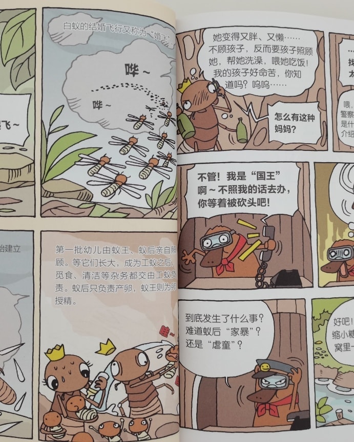 好啦,我就挑这本《坏蛋的秘密》中其中一个故事来分享,题目是《蚁王要换妻》。为什么蚁王要换妻呢?大家一起来评评理。