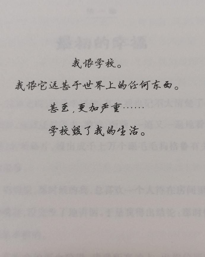 “我恨学校。我恨它远甚于世界上的任何东西。甚至,更加严重……学校毁了我的生活。”