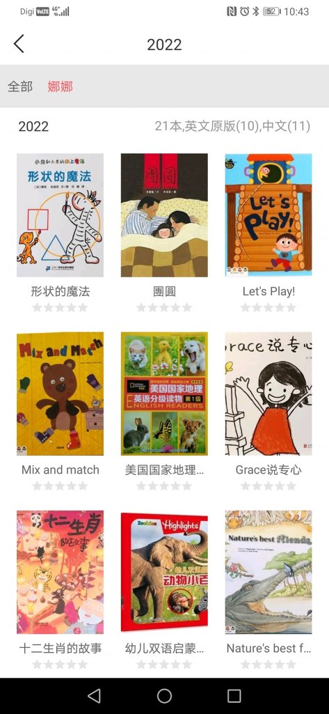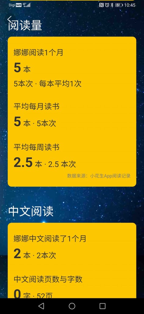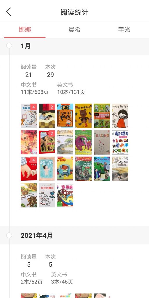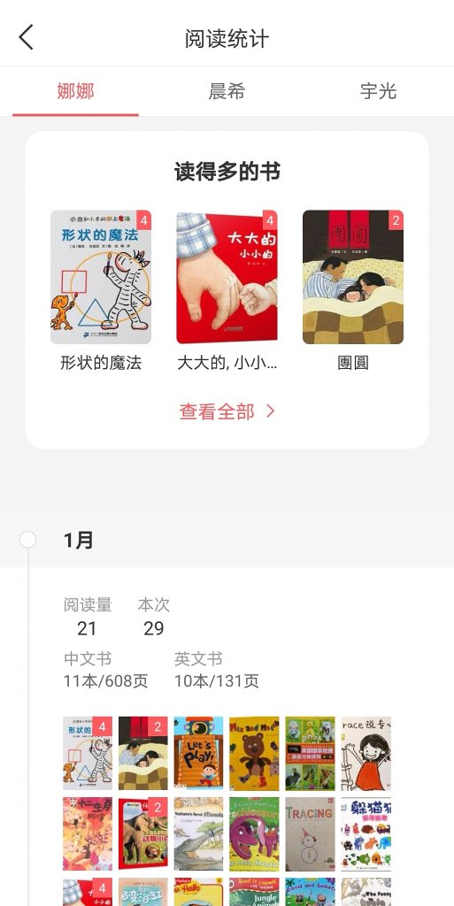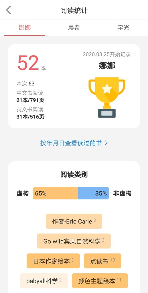 小花生app有数据可以帮你分析,每天实践记录亲子共读绘本,小花生app的阅读数据就会分析地更准确。因为这个数据,我才发现我的中文英文绘本阅读蛮平均的。