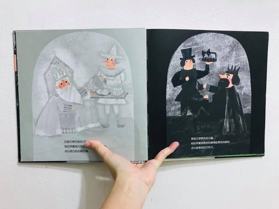 对于一直生活在只有黑和白的世界中的白国王和黑国王来说,接纳不同和改变自己是一件非常艰难的事情。正如我们身边一个个固执任性,被骄纵惯了的孩子们。然而,跨出那艰难的一步,接纳多彩的世界,带给我们的惊喜和收获绝对是惊人的!