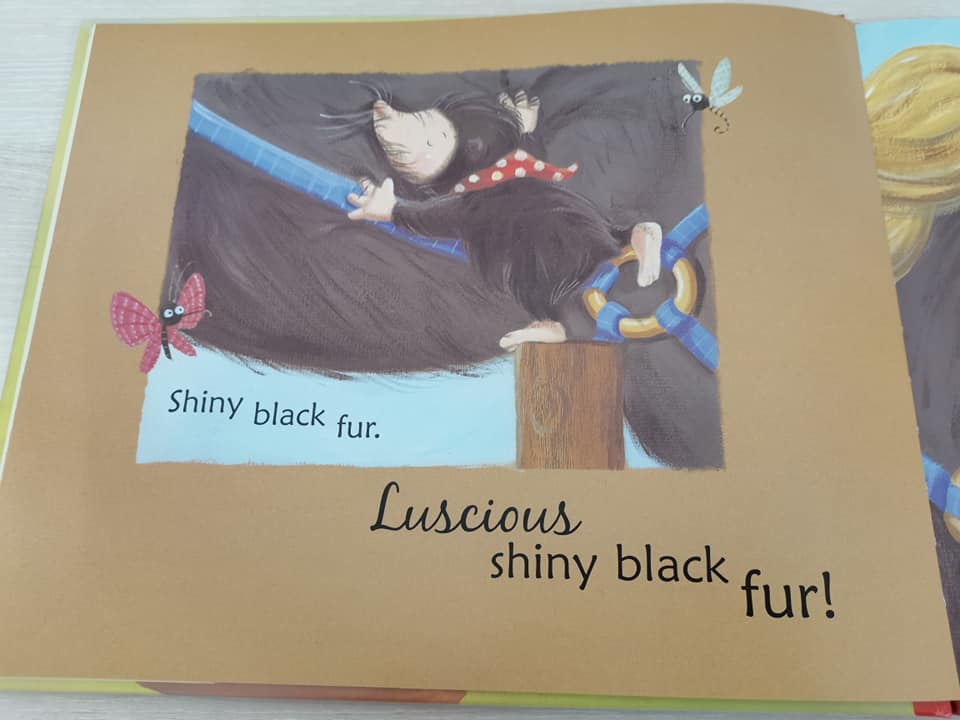 。他视力不是很好,不过他觉得应该不难找。他知道他要找的是:黑色的毛发。他摸到了亮丽的黑色毛发(是一匹马)。他抱着那黑毛,还送它飞吻,但马儿给了他一脚,把他抛去干叶堆中。