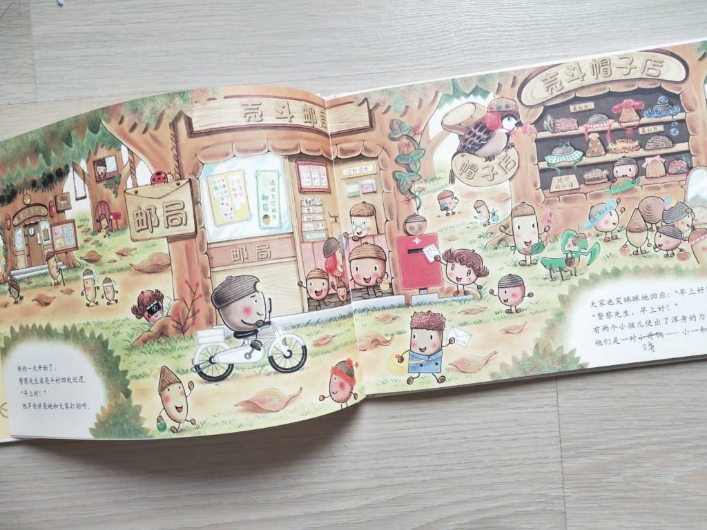 题外话:我一直在想什么是“壳斗“,主角明明是橡实啊。橡实是壳斗家族的成员,从绘本学到的知识又增加了。