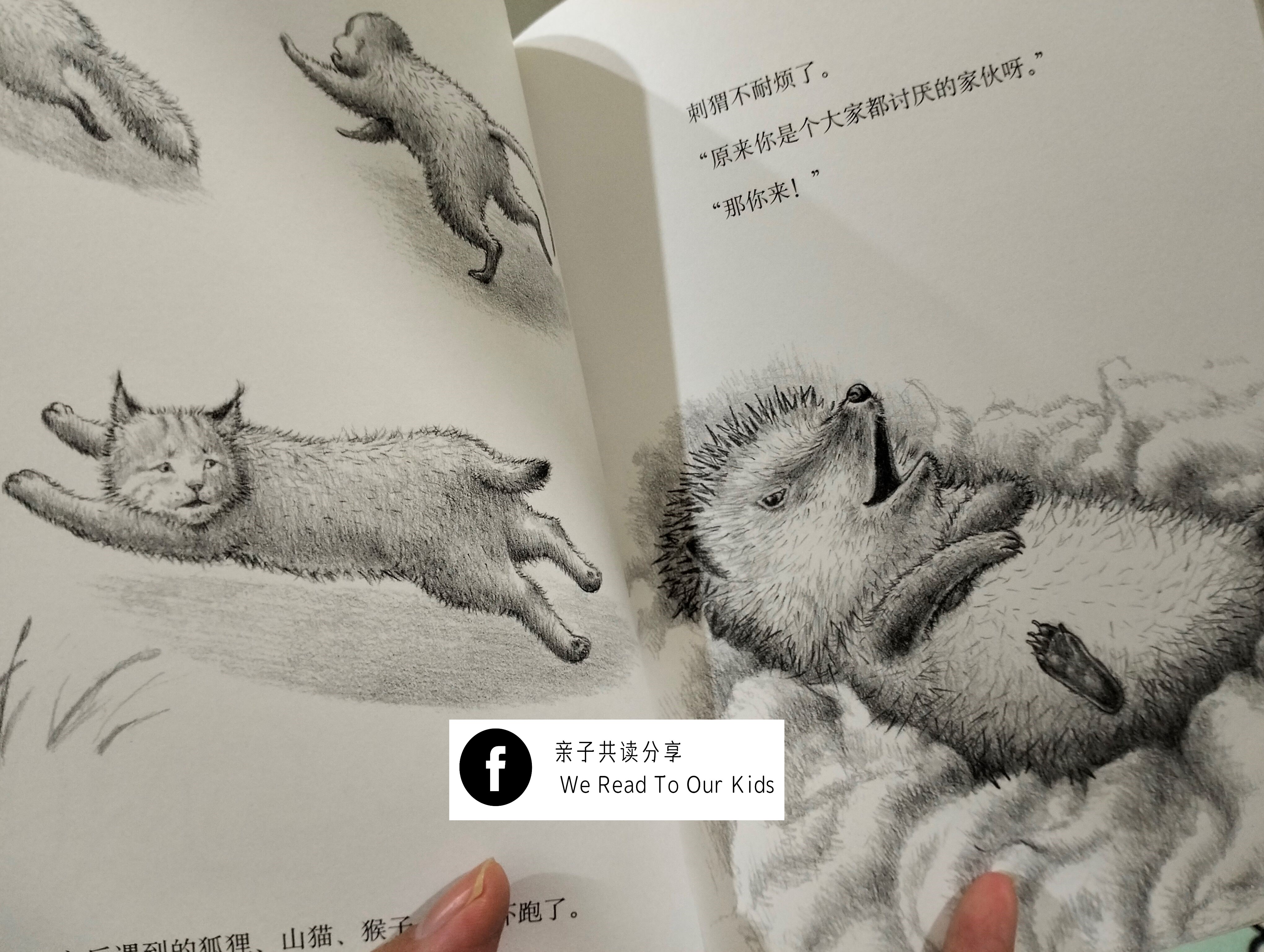 山羊和刺猬最后的确变乖了,但作者对于这个转折是经过细心铺垫的。山羊和刺猬,在相遇前很可能从来没体验过有伙伴的生活,即使两只动物从未停止争吵过。转捩点就在刺猬,因为长时间埋在羊毛里,不能吃不能喝。逐渐虚弱的刺猬,牵动了山羊的不舍之情,哪怕屈膝卑躬也要拯救刺猬。深受感动的刺猬终于放下娇贵,得到重生,也得到友情。