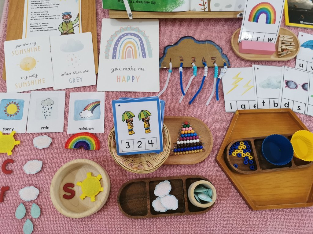 娜娜早教拓展天气主题配合这本绘本的画风和文字,更能理解和认知cloud, storms, fog, rain , sun。