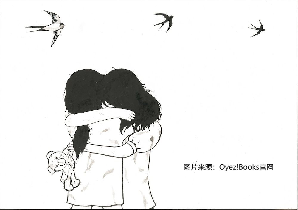 翻开第一个跨页,是两个小女生在玩乐。随后战斗机在空中盘旋,接着烽火四起,居民们慌乱中收拾行李逃亡。没有文字的页面,让读者安静地品读作者用图画说的故事。逃亡中,两个好朋友失散了,一人拿着另一人留下的玩具熊,她们还有相见的一天吗?