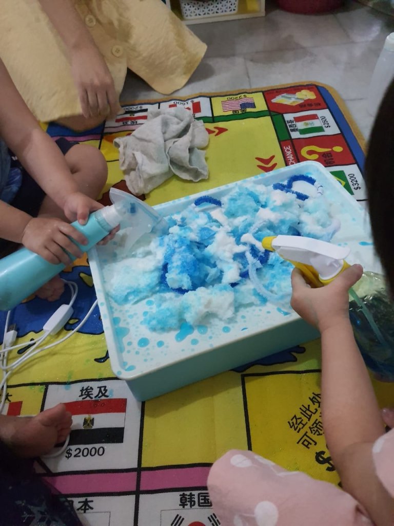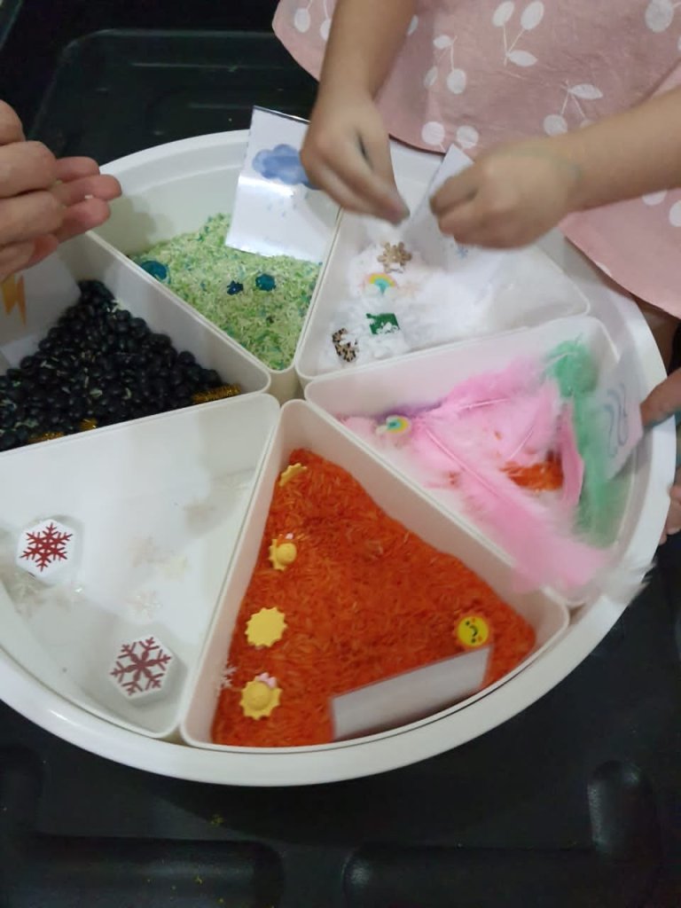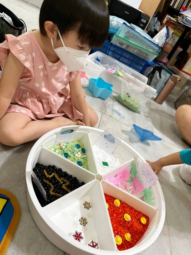 我们特地找了usborne出版的天气主题的书,进而延伸出玩中学天气主题活动。