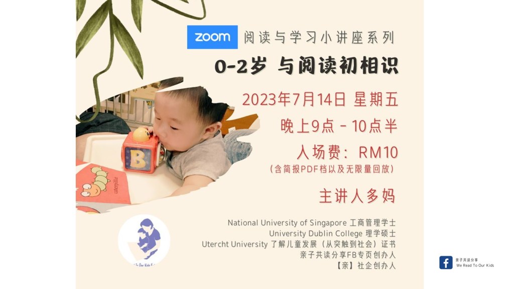 0-2岁与阅读初相识小讲座无限回放,现在开始售卖,RM10,以gmail登入观看视频,还附上简报PDF,保证不卡!