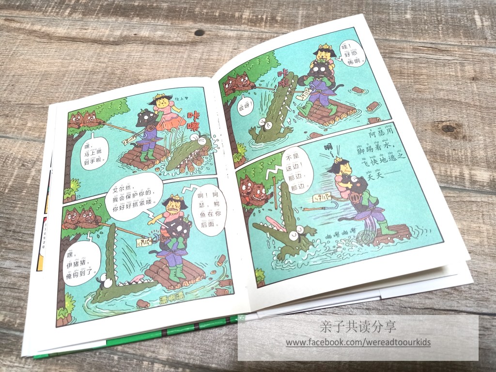 这系列的书一共有三本,我们只看完了第一本。刚开始时,是妈妈自己偷偷在看,我实在不愿意与孩子共读这本书,因为字很多。自己在看着《你疯了吧!》时,我一面看一面笑,真的很幽默。孩子看到我的反应,便自动地凑前来,要求我读给他们听。