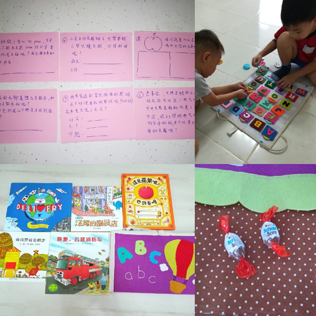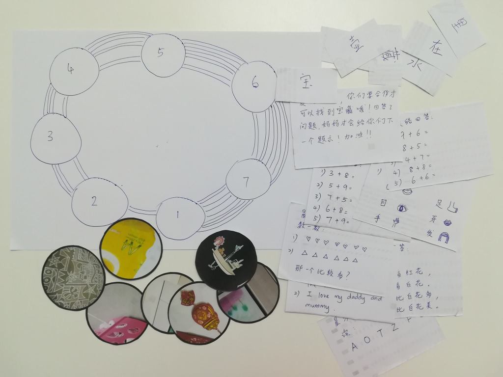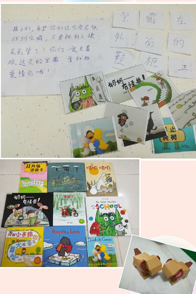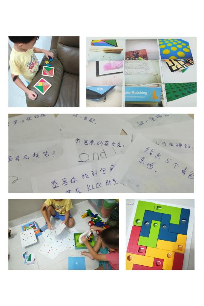 好吧,被识破了,原来都是妈妈准备的,那我就可光明正大地给任务了。之前都是靠他们自己找,我只是帮忙读提示。这次,他们得向我拿提示。