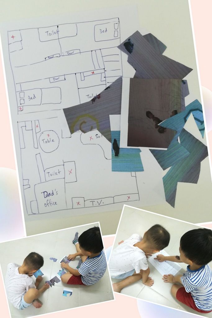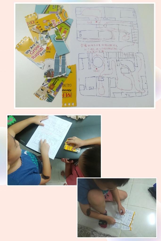 打印机没墨了,身边有什么材料就用什么呗。看得到拿张画是什么图画吗?家里地图也没有打X,只有路线。孩子沿着路线去观察和寻找。