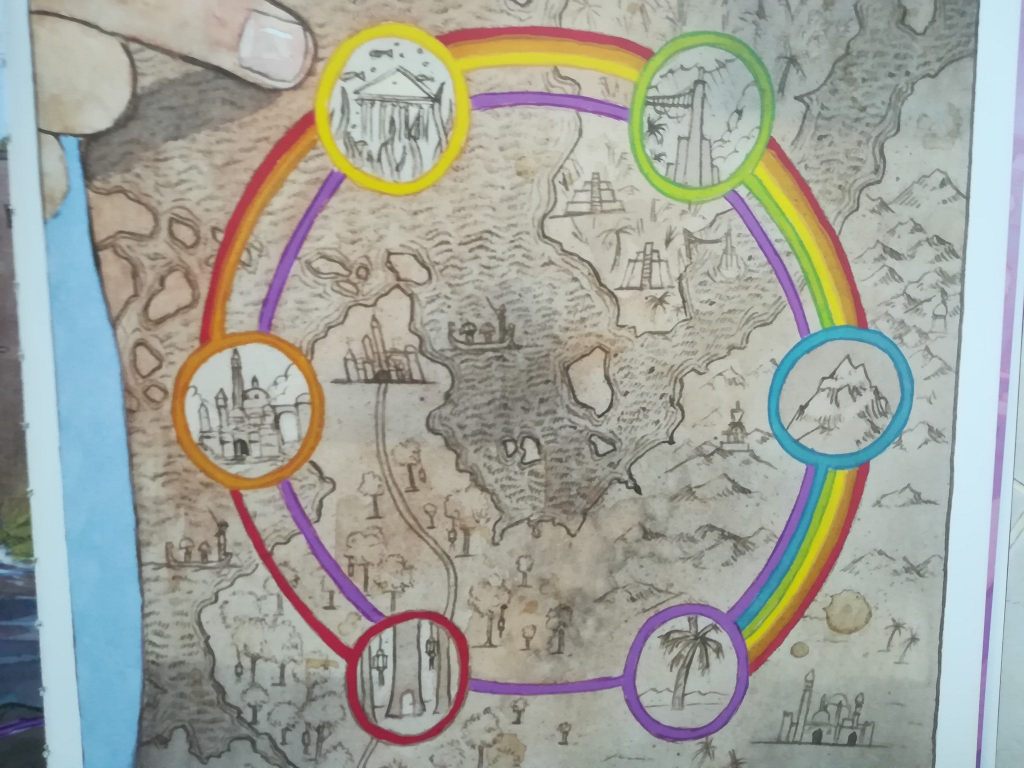 在想着要怎么设计这次的寻宝游戏时,脑袋里突然浮现《不可思议的旅程彩虹国度》里面的那张宝藏图。好,就模仿那张!