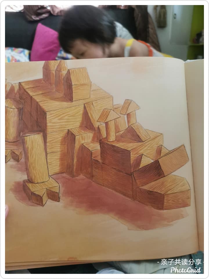1. 先照着绘本里的来画寻宝图。(如果知道要贴在专页,我应该会用心画一点