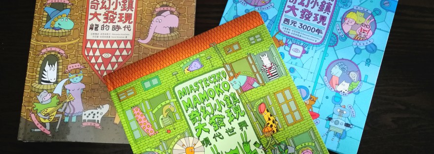 今天介绍我们家最贵重的绘本!起源是,一年前,我们一家三口逛KLCC的Kinokuniya,发现了一套三本的Mamoko奇幻小镇。多妈之前也听闻Mamoko,但还是第一次在书店里看到摸到。因为价格不菲,所以摸了几下就放下来了。甚料,平日抠门的多爸,居然豪气地买下来,挡也档不住。结果回来一拆开包装,我俩就呆掉了,“这。。。要怎样共读啊?”。一本没有文字,一眼望去尽是各种各样的动物人物而复杂多变的绘图却据说有故事性的绘本,两人立马感觉乏力无从下手,于是又很宝贝地把三本书都收进柜子。