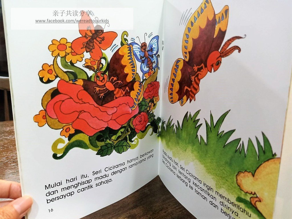 Seri Cicirama, 在还没有蜕变成蝴蝶前,是一只被其他小动物嘲笑的毛毛虫。但是它蜕变成一只美丽的蝴蝶后,却变得骄傲且爱炫耀自己的美丽。 一天,下了一场大雨,它因为来不及遮雨,全身湿透没办法飞起来。Seri Cirirama最终掉在一个小男孩Mirza的手心,它会遇到危险吗?它还能够回家吗?