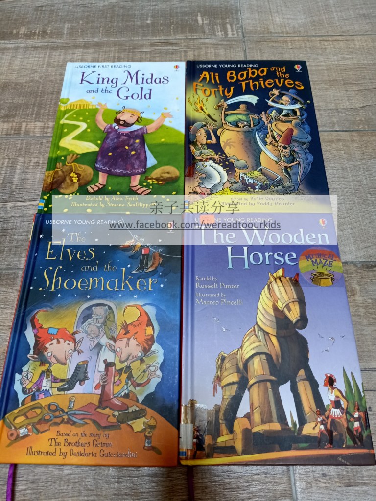 Usborne Young Reading 进入初级章节书阶段,有几本在我家点播率是非常高的:《The Elves and the Shoemaker》,《The Wooden Horse》,《Ali Baba and the Forty Thieves》还有《Perseus & the Gorgon》,刚好选的都是希腊神话故事、童话故事和天方夜谭。因为《Ali Baba》,我又给孩子找了中文版的一千零一夜故事书,讲了简化的辛巴达和阿拉丁的故事。